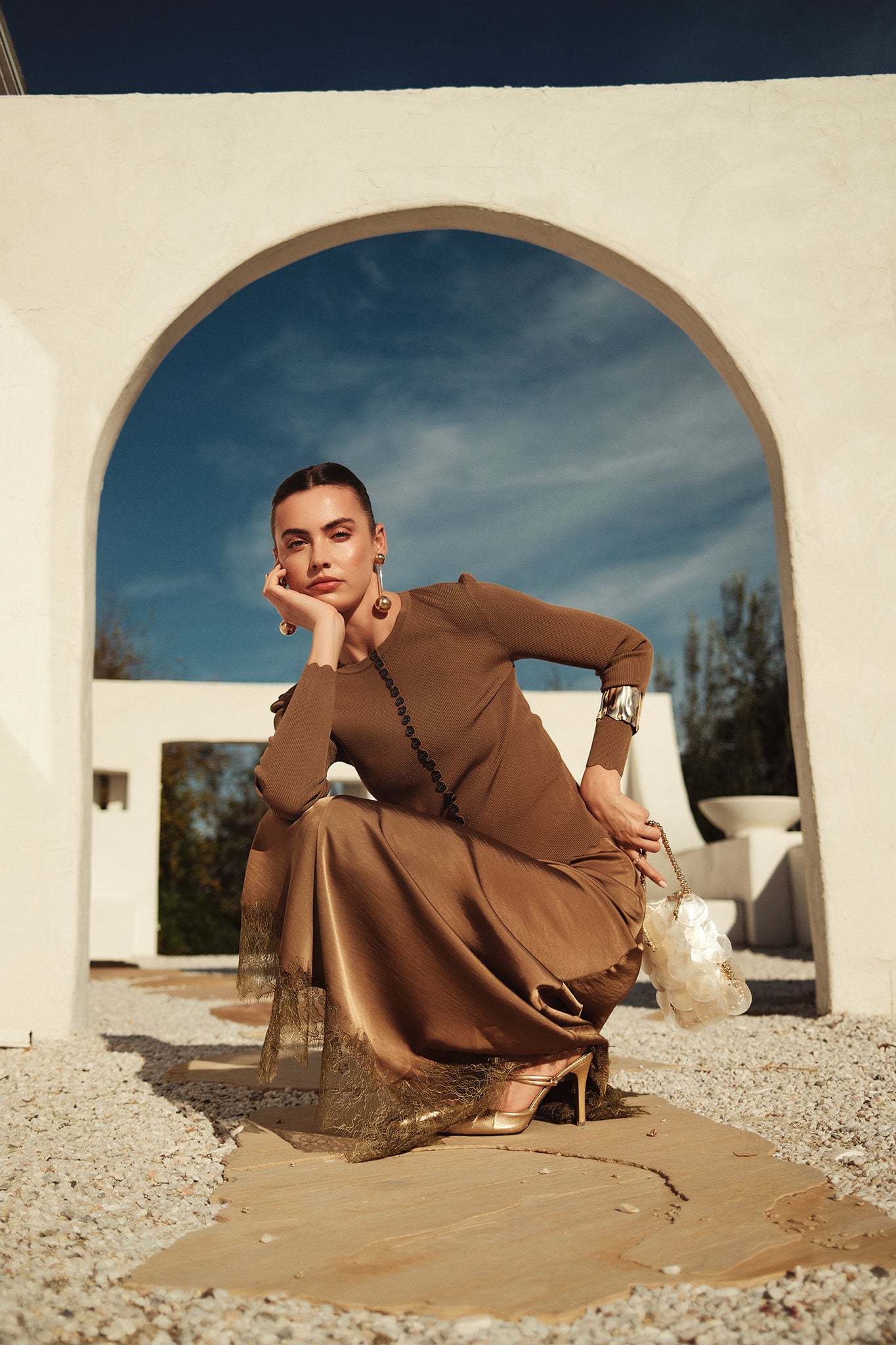 Bliss Scalloped Edge Knit Cardi Brown