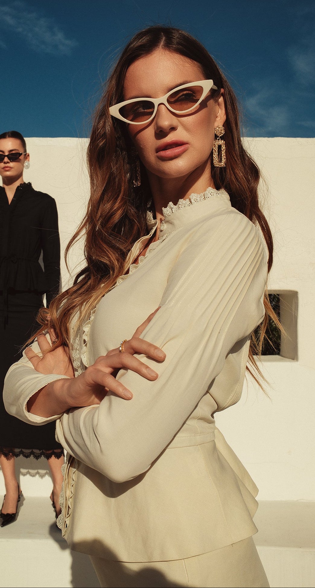 Bliss Embroidered Trim Linen Blouse Cream