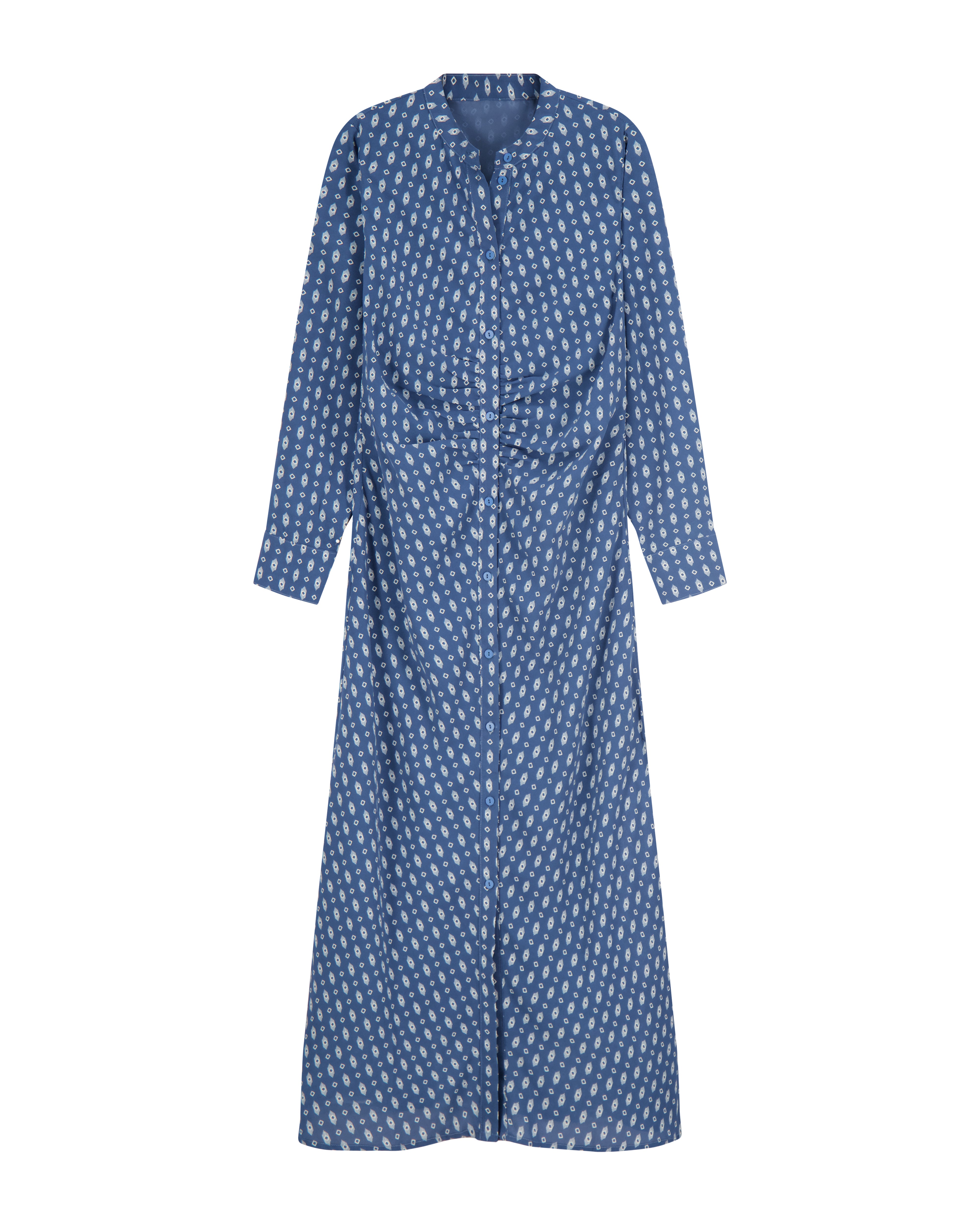Step into effortless style with our Ruched Shirt dress in Light Blue Geo Print. Featuring a subtle geometric pattern and flattering ruching along the front, this dress combines the timeless appeal of a shirt dress with contemporary detailing. The light blue color offers a fresh, calming vibe, while the ruching adds texture and shape, enhancing the dress’s flattering silhouette.