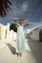 This knit-satin combo dress pairs a soft, knit top with a satin balloon-style skirt for a subtle mix of textures. The relaxed silhouette and gentle volume create effortless movement, while the combo design keeps the look modern and versatile.