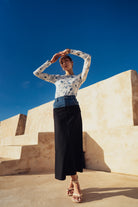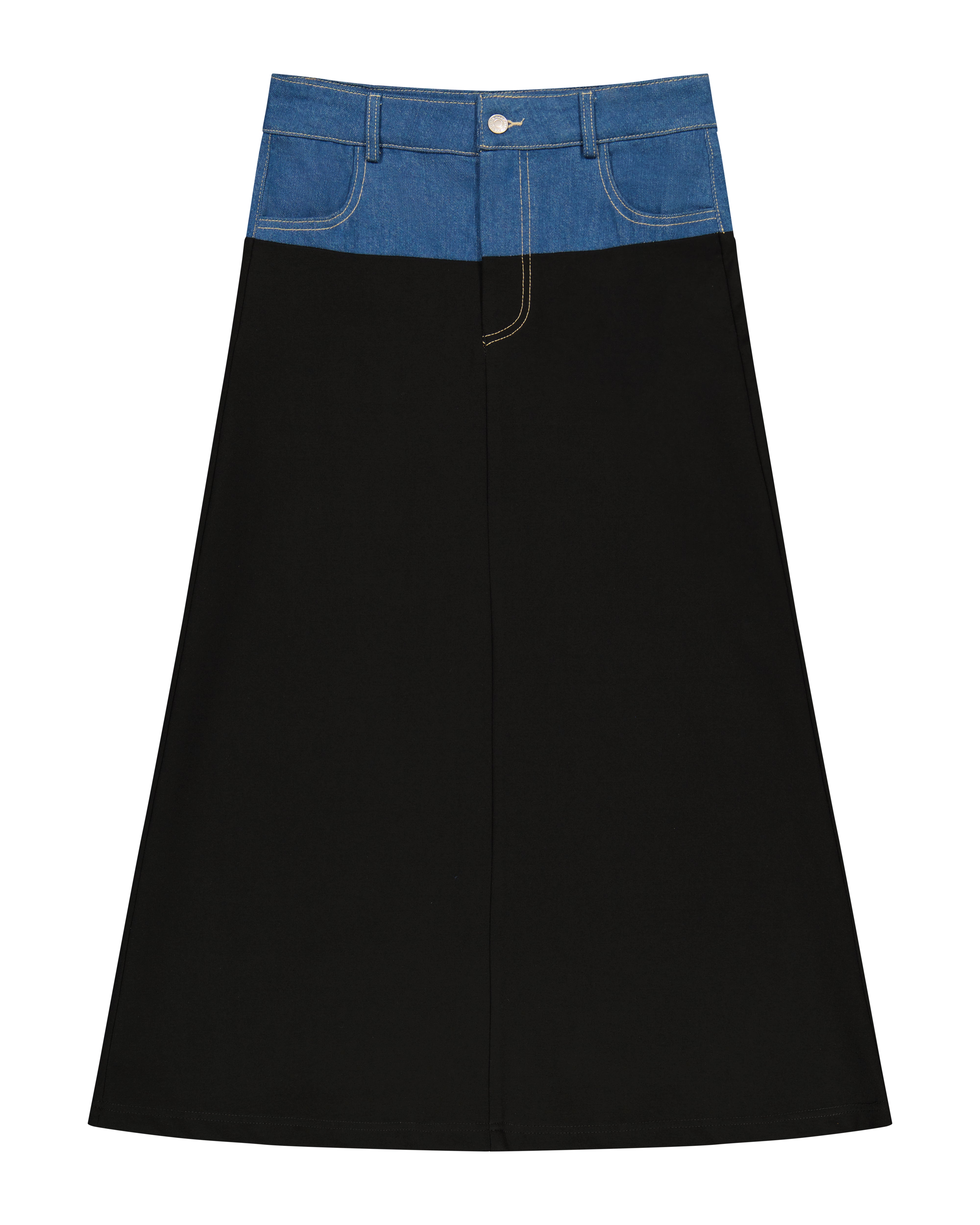 Upgrade your skirt collection with our Denim Ponte Combo Skirt, a versatile piece that blends the durability of denim with the sleek stretch of ponte fabric. Designed for a modern, flattering fit, this skirt combines structured denim with the softness and flexibility of ponte, creating a chic and comfortable skirt perfect for both work and weekend wear.