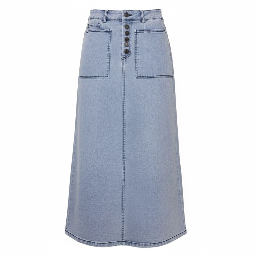 Step into effortless style with our Denim Stretch Skirt. Crafted from durable, soft denim, this versatile skirt offers a flattering fit that’s perfect for everyday wear. Its classic light wash gives it a fresh, casual vibe that pairs perfectly with sneakers for a laid-back look or dressed up with a blouse for a chic, casual outfit.