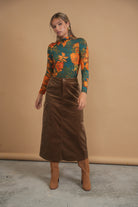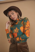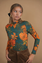Bliss Printed Mock Neck Teal Floral