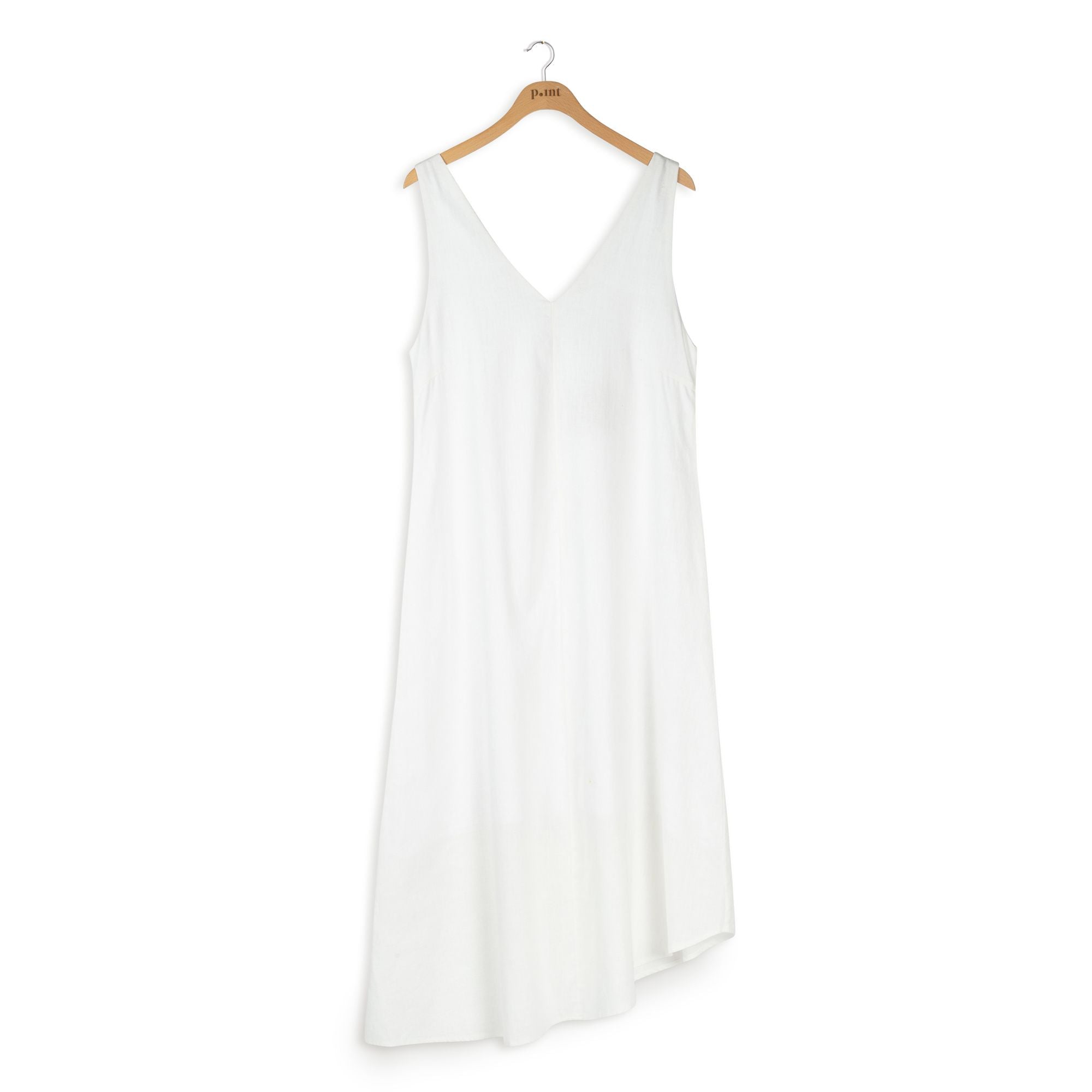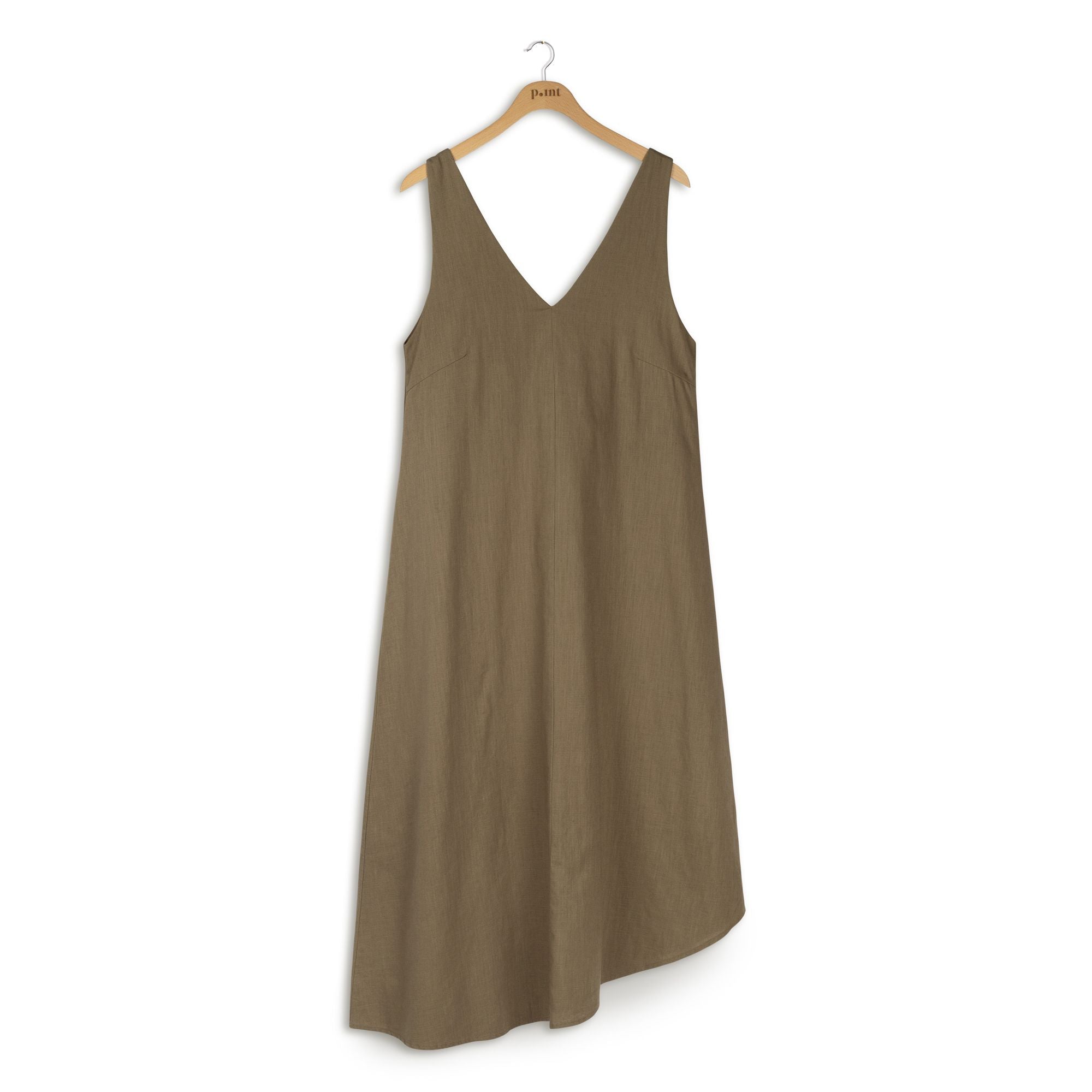 Try something new. Effortlessly interesting, this trendy dress has a slanted hem, making a subtle yet memorable fashion statement. It features a V-neckline for a slimming effect around the decollete, while its semi-relaxed fit offers a graceful silhouette. Crafted from premium linen, it’ll keep you feeling fresh and cool in any weather. Wear it solo or layer with a cardigan on a chilly day or night.