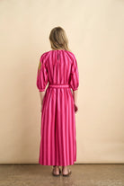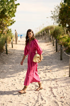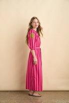 It features cherry and magenta stripes with beautiful sleeve embroidery that makes it truly special