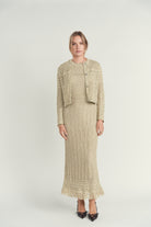 Ellie Makir Shimmer Knit Dress & Cardigan Gold Hue
