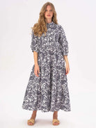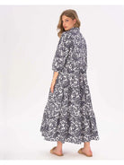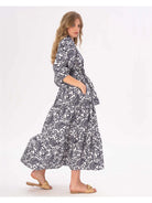 Paisely Floral Tiered Cotton Belted Maxi Shirtdress