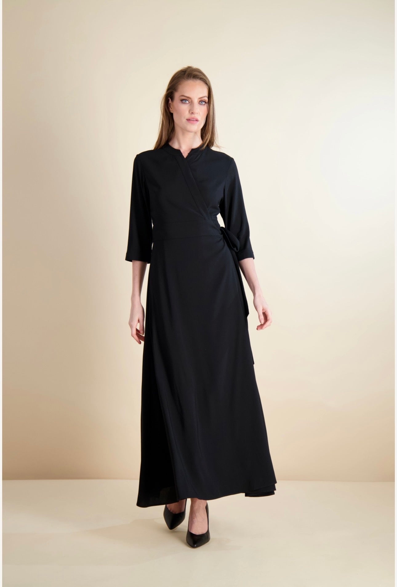 Clean, minimal, and incredibly chic, this wrap maxi proves that the simplest pieces are often the most powerful. Every detail is thoughtfully considered to keep you looking polished, slender, and effortlessly put-together — a true wardrobe essential