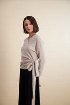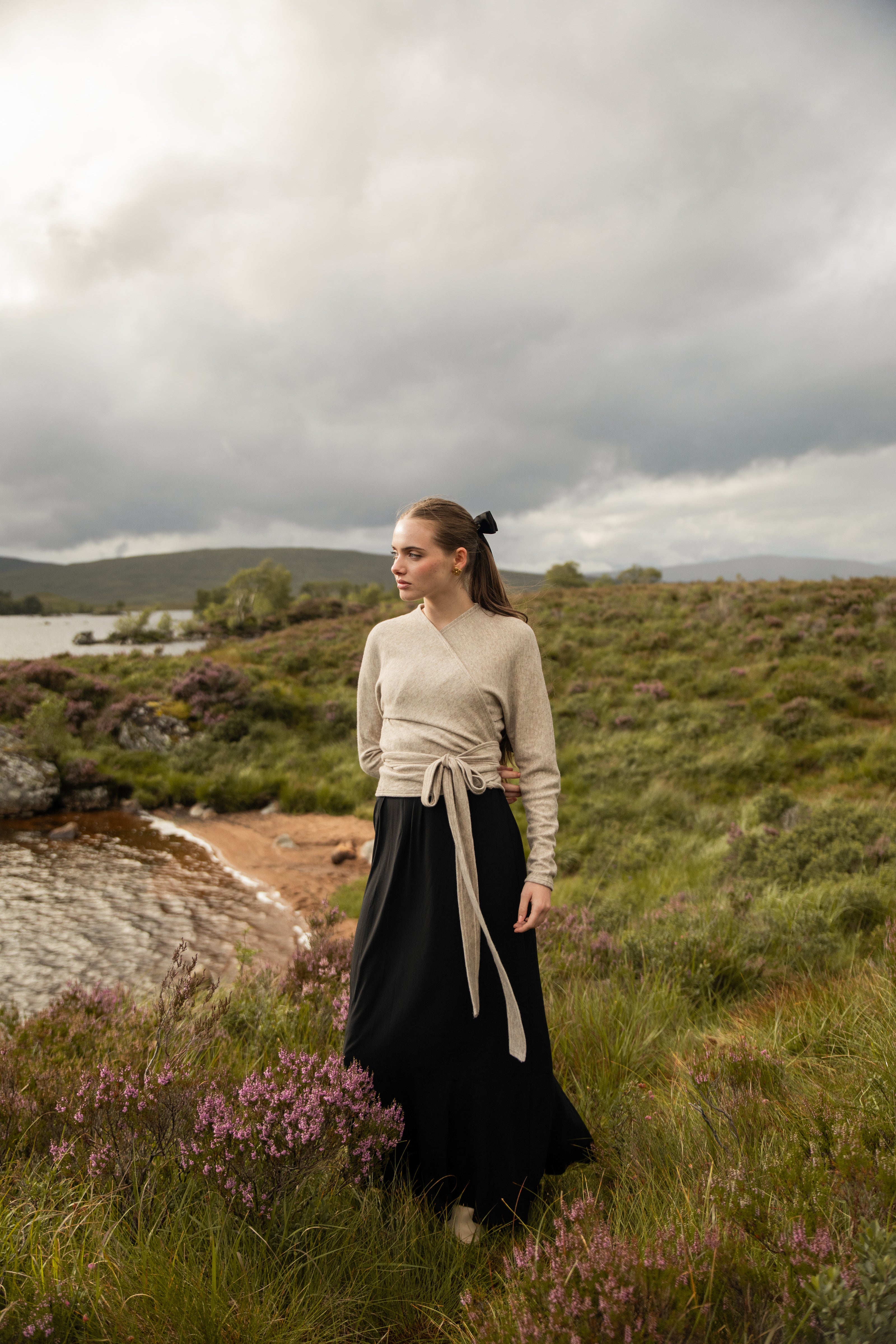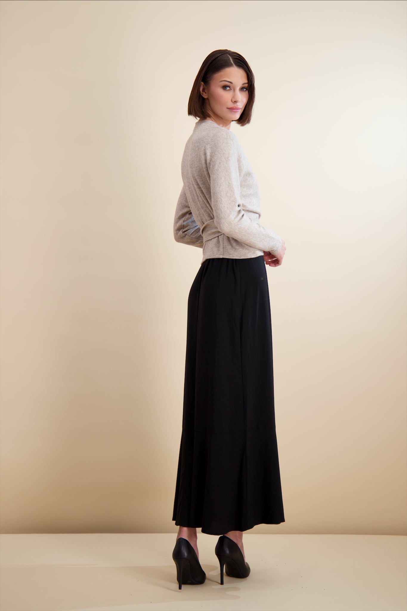 GORGEOUS two piece maxi set! Soft and cozy oatmeal colored wrap sweater is layered over an A-line woven jumper, which features a nursing friendly stretch top. Everyone loves a phenomenal wrap top, and this magnificent and substantial number does not disappoint.