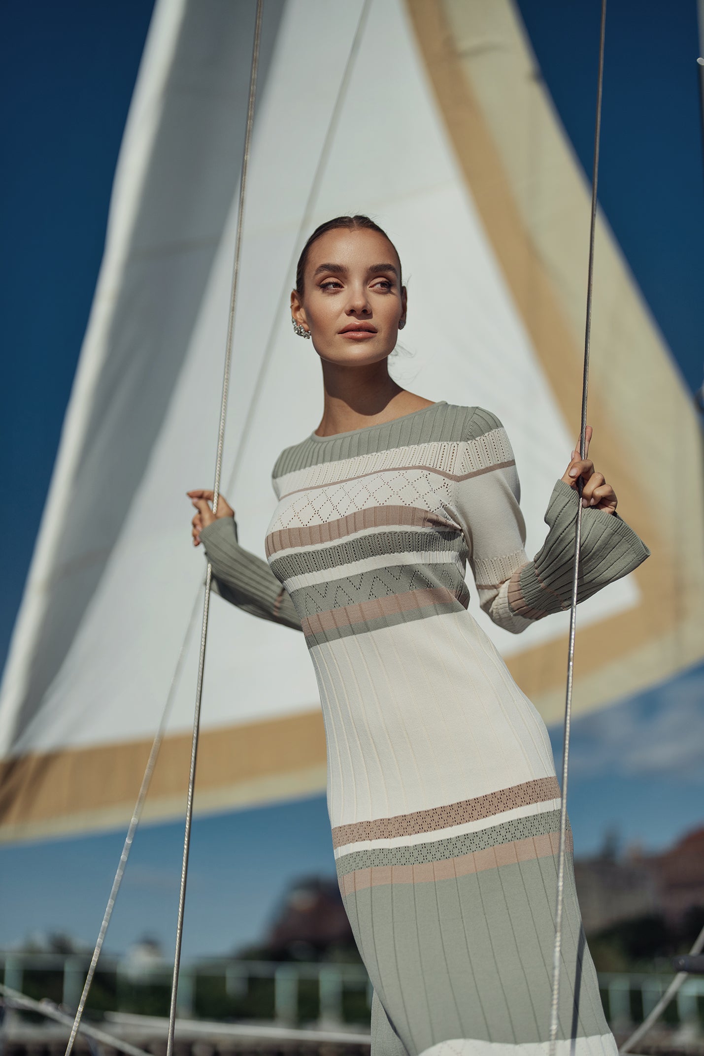 Ellie Makir Chromatic Knit Dress Desert