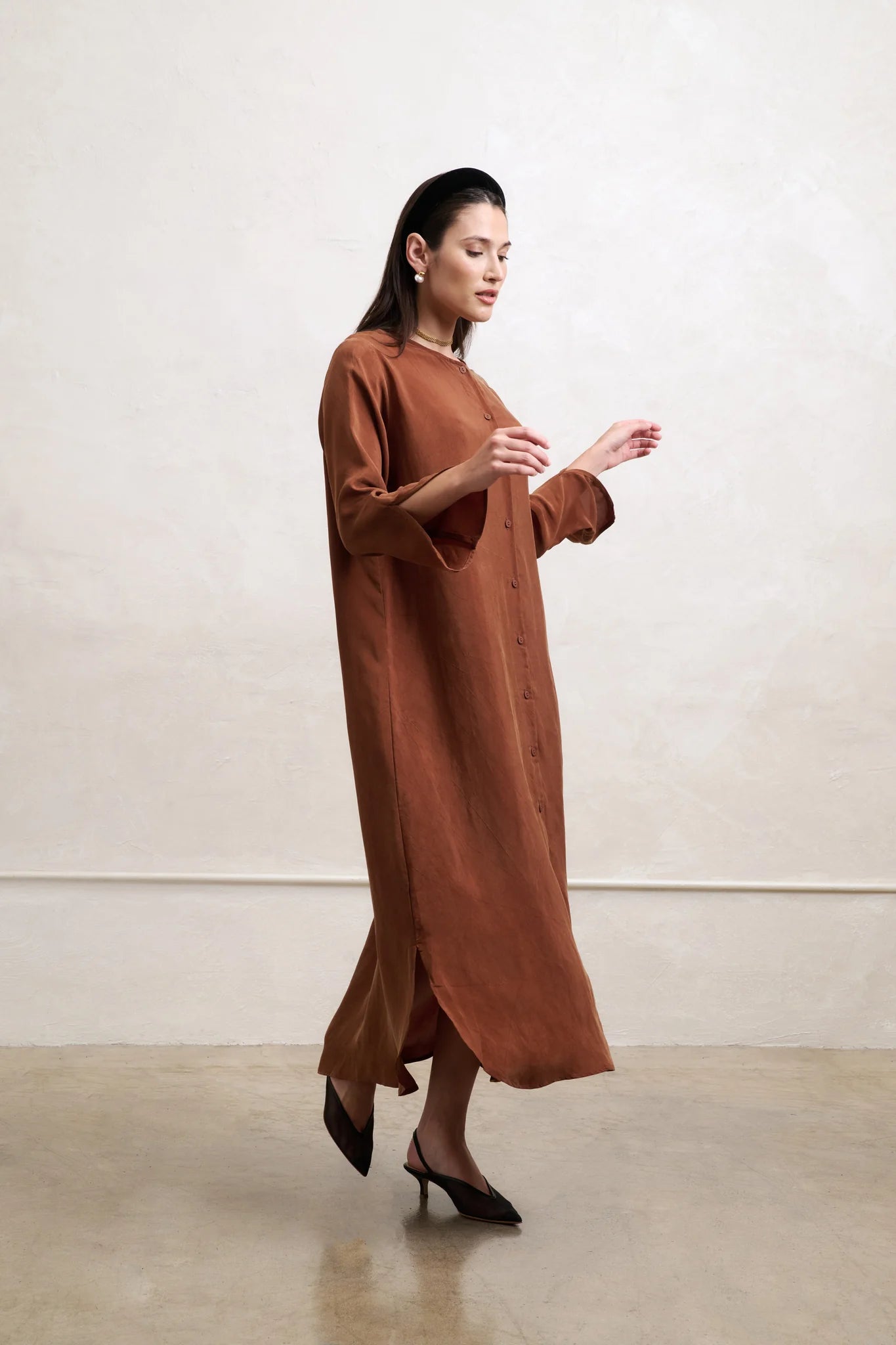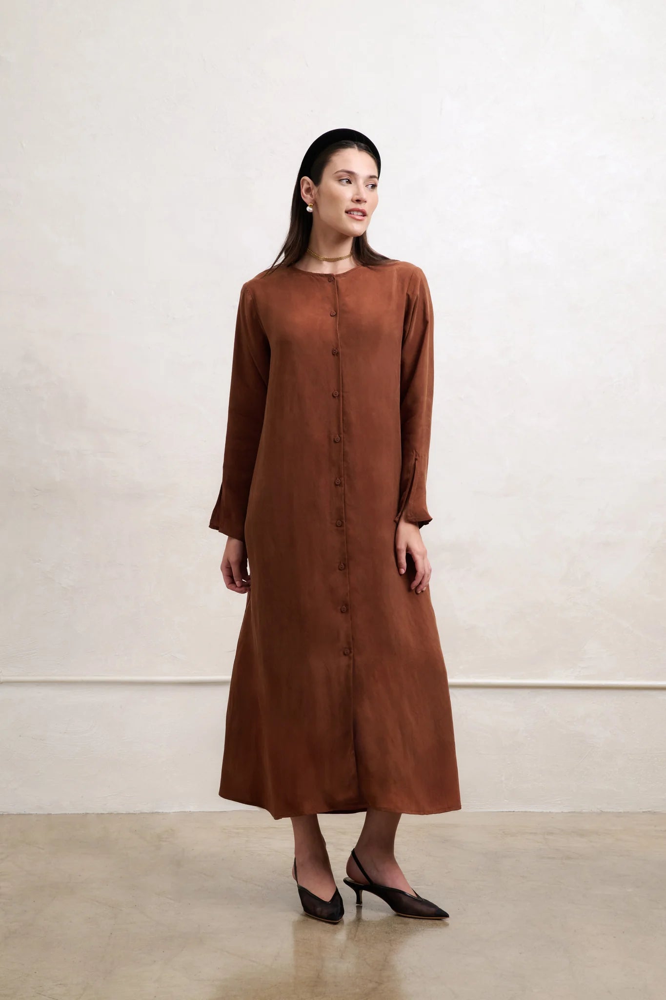 The Solène Midi exudes effortless elegance. Crafted with a luxurious silky cupro, it's perfect for holidays, date nights, or a lovely evening out. Embrace its luxurious comfort and sophisticated style, exuding confidence and charm whether you're exploring new destinations or enjoying a night out. Solène adds an extra touch of allure to your ensemble.