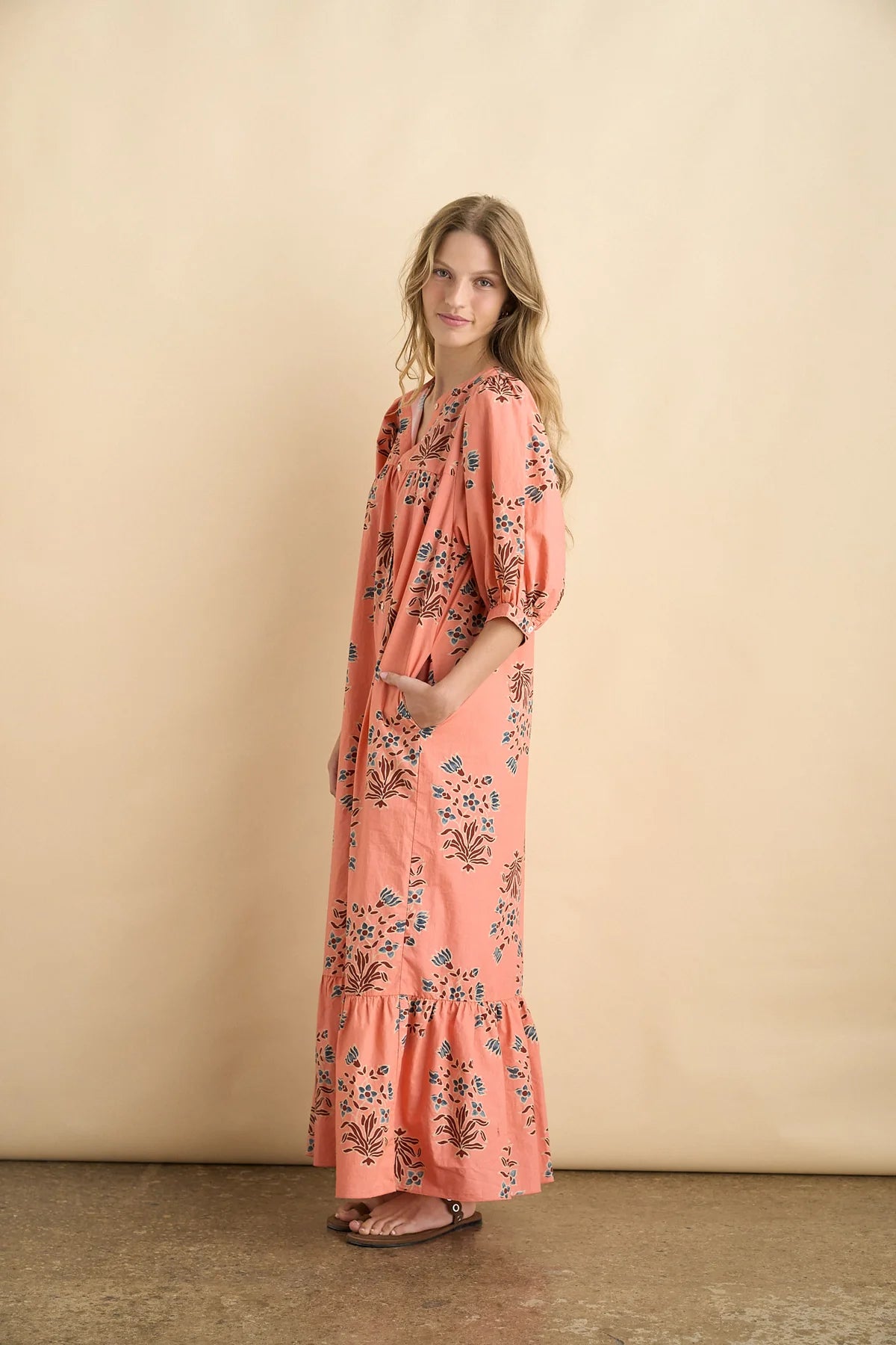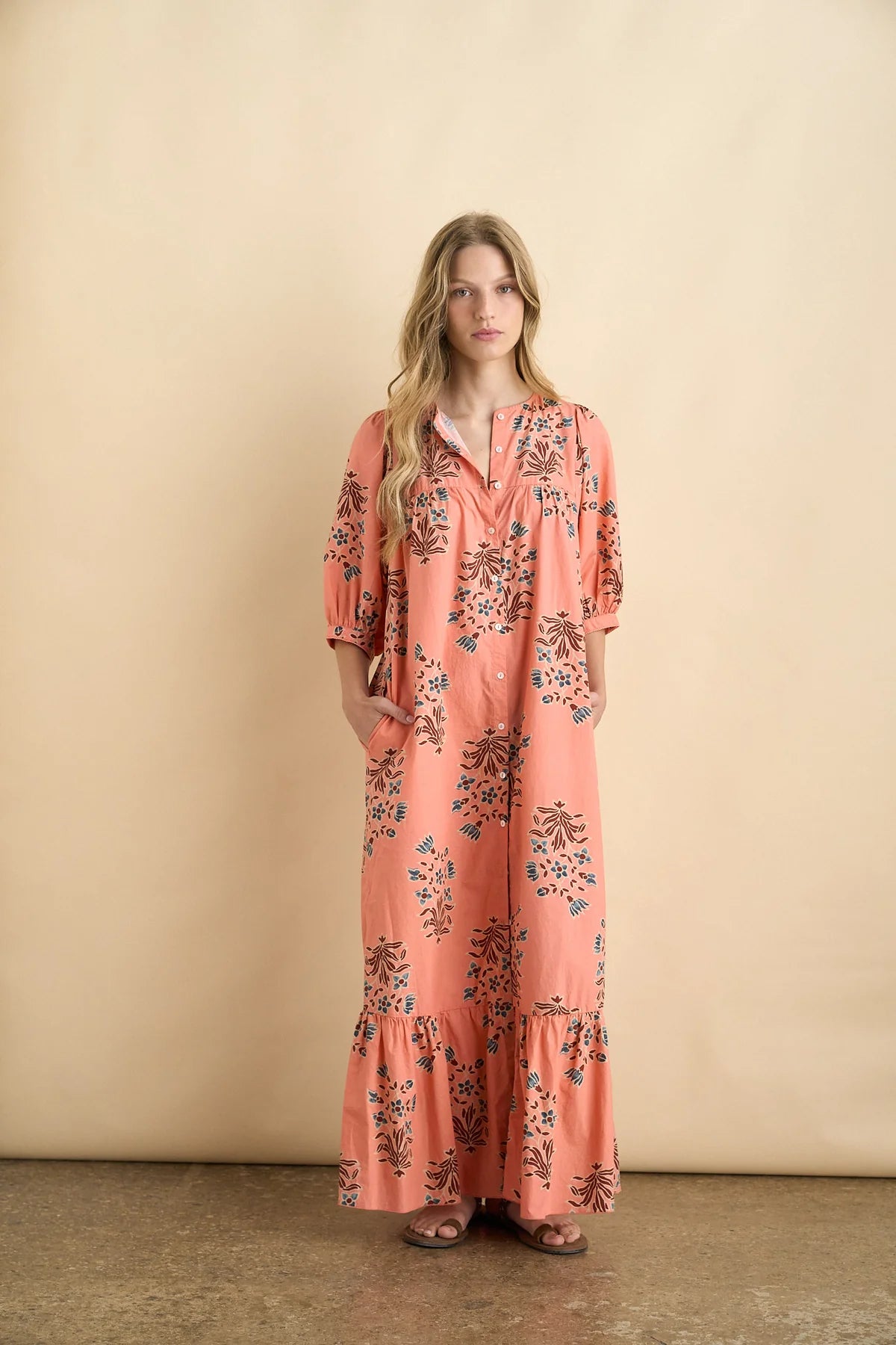 Sonmers loved maxi dress Sofia features short sleeves covering elbow and front button closure