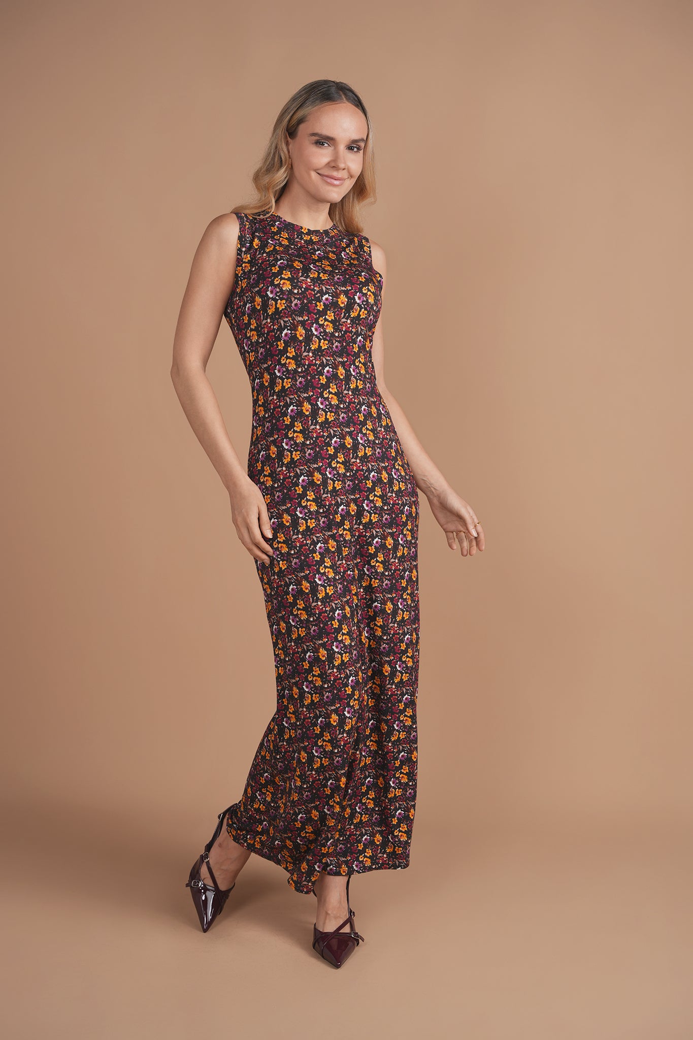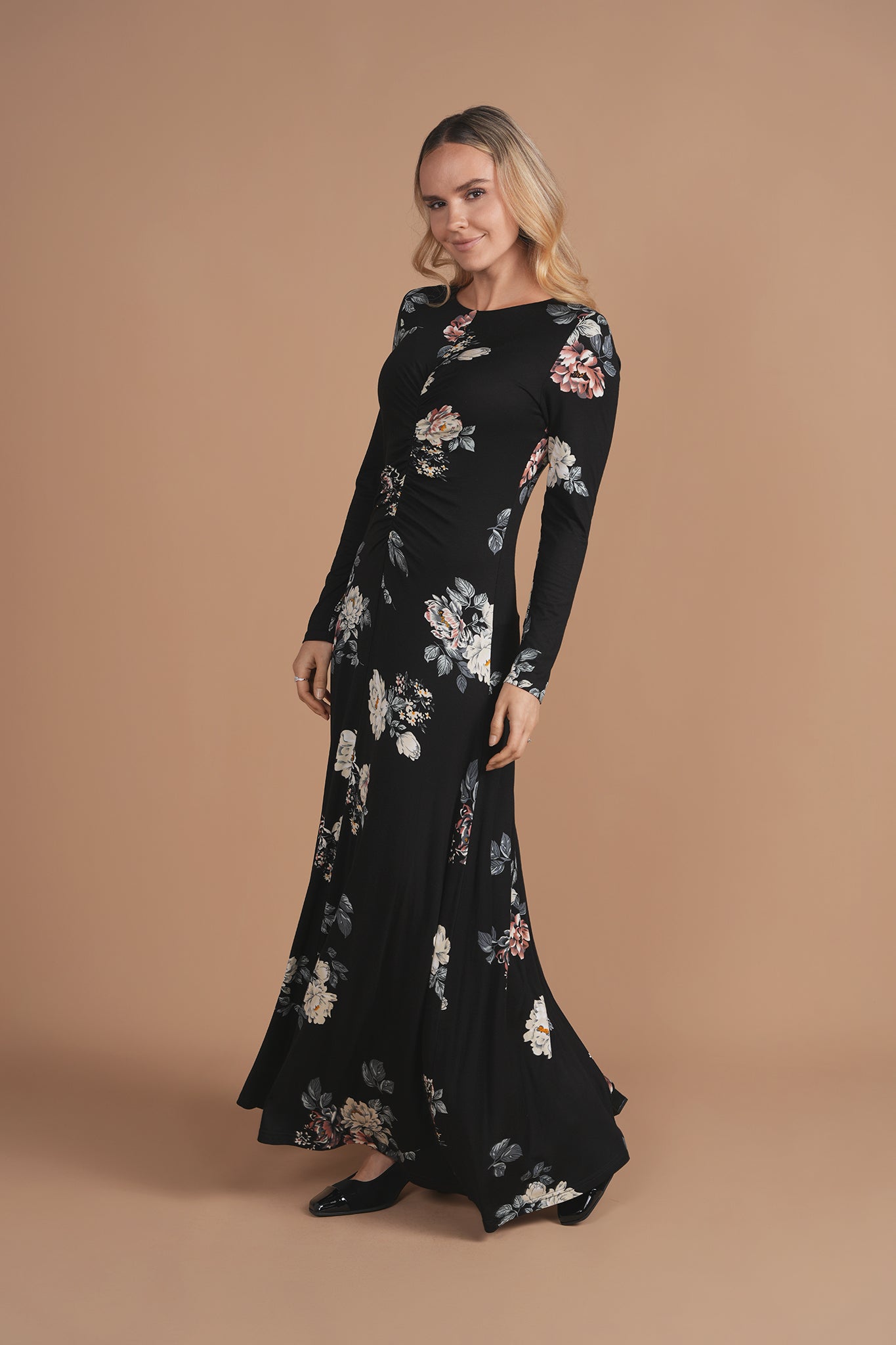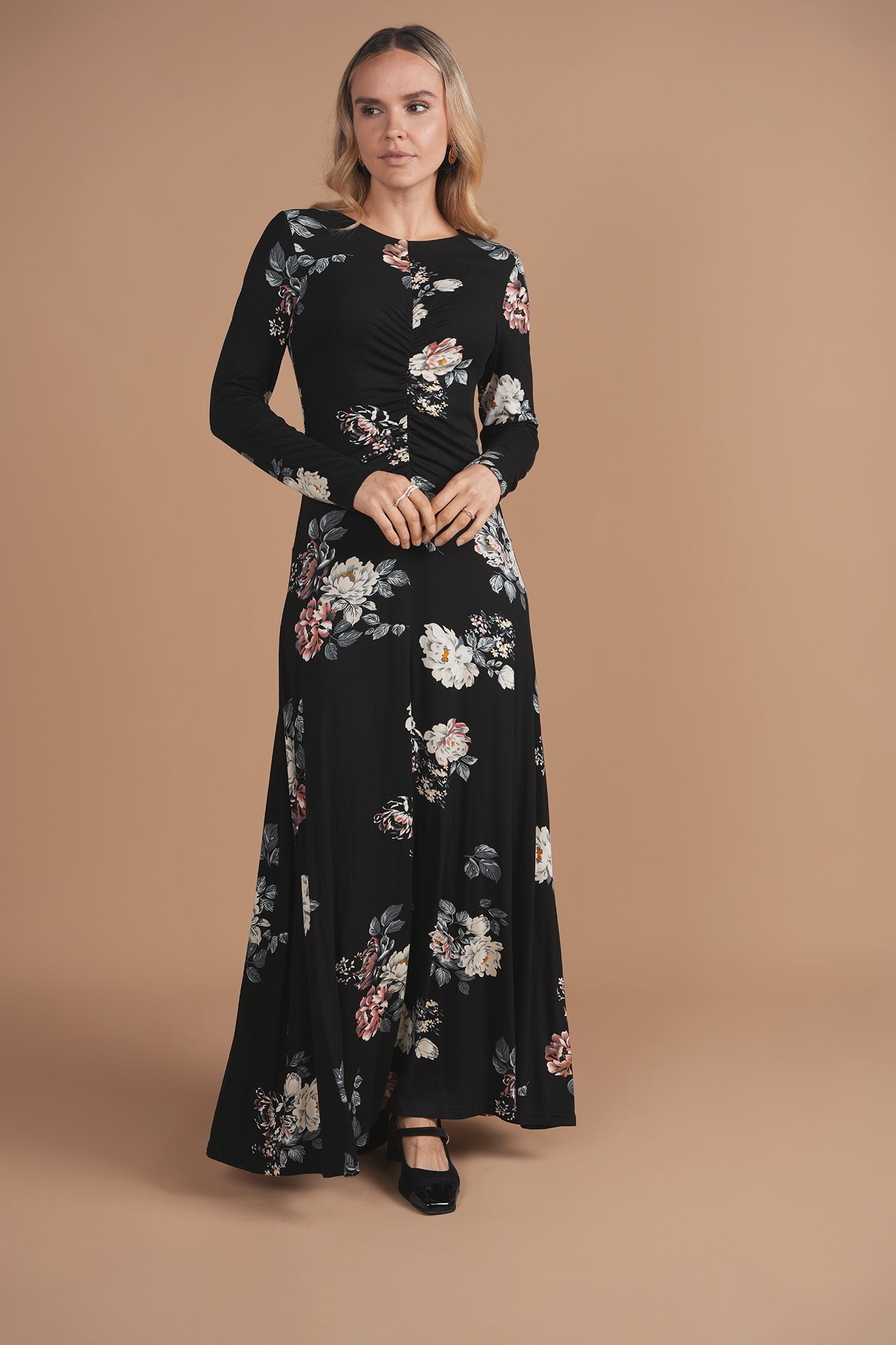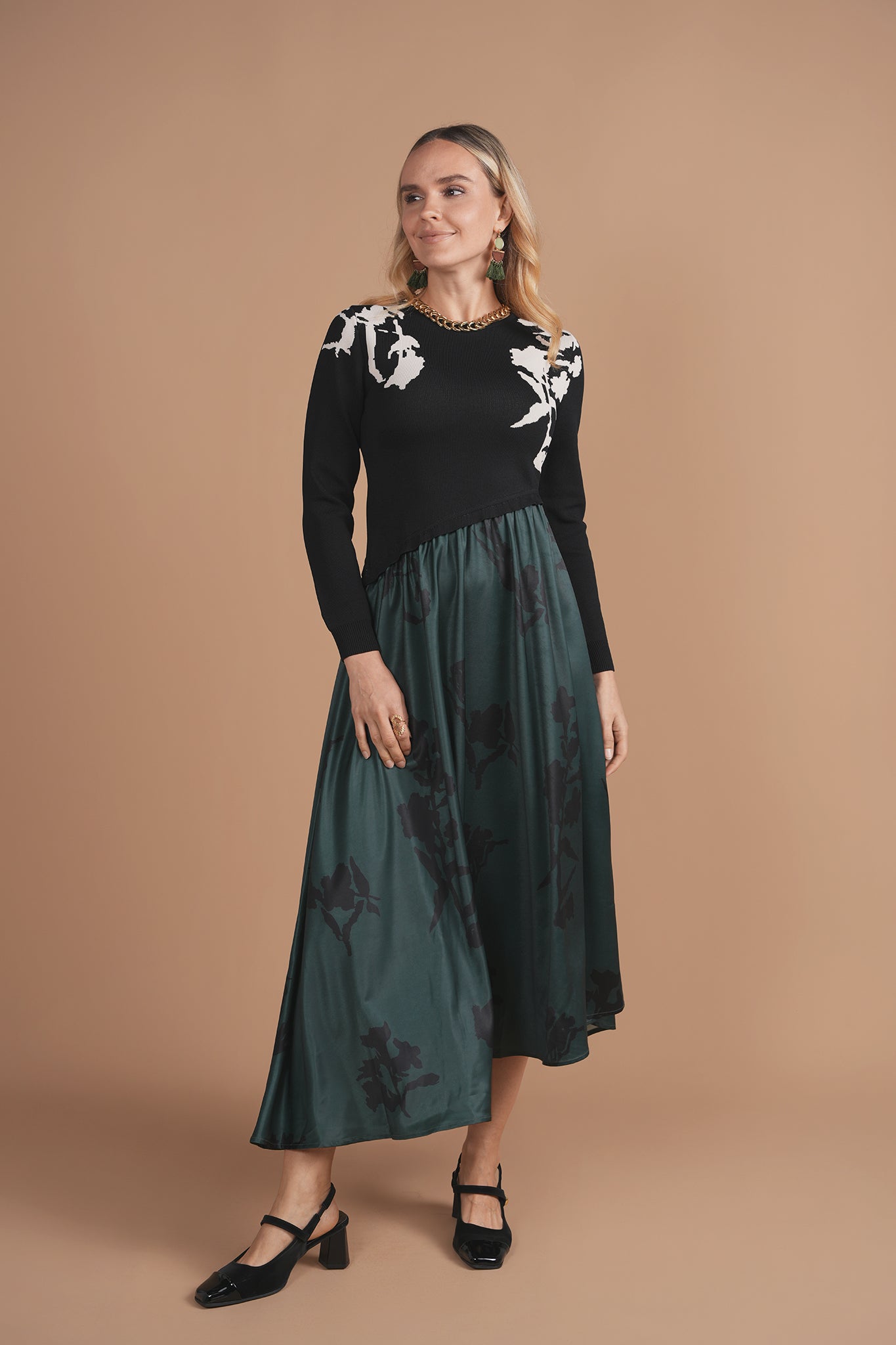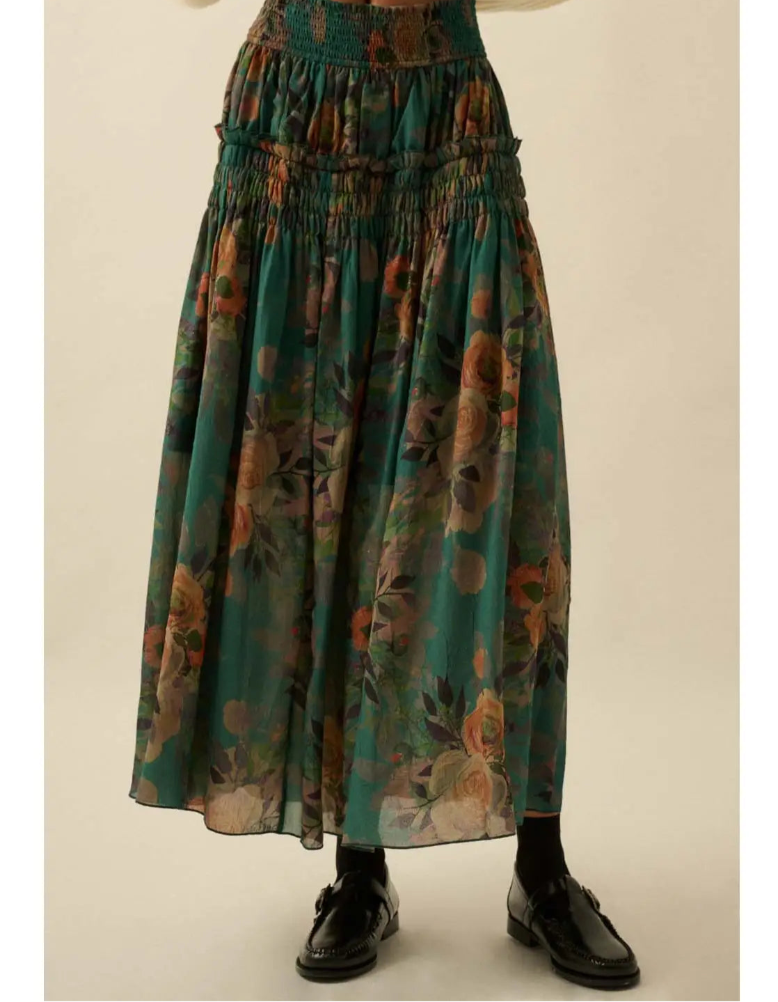 Floral Print Drop Waist Ruffle Maxi Skirt - Pine Green