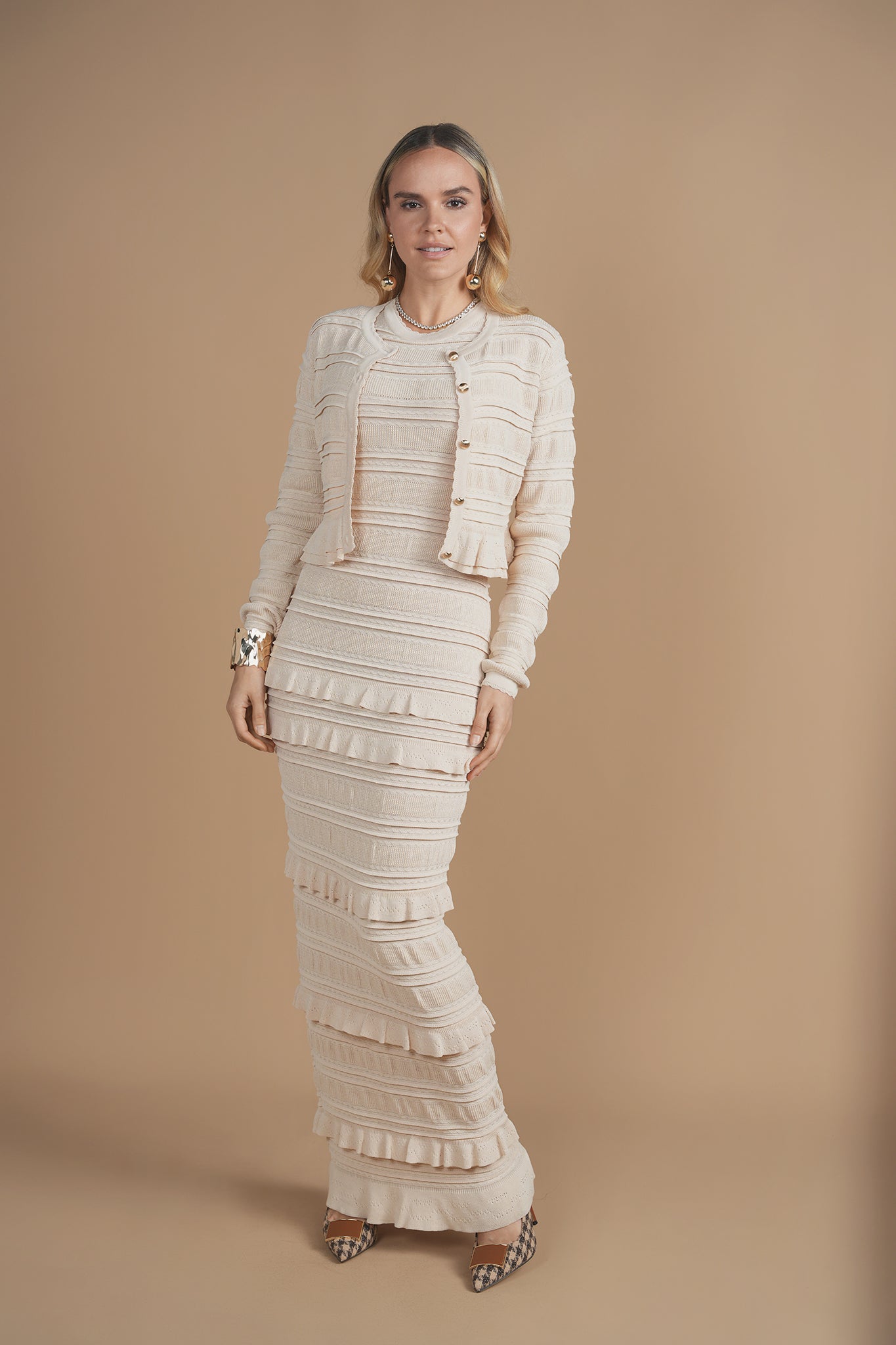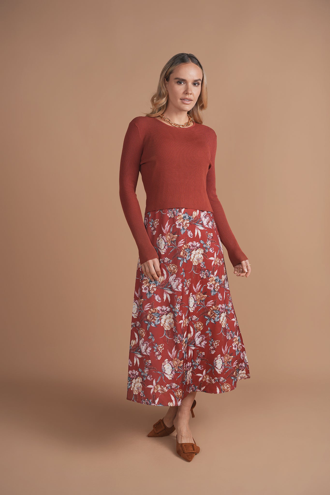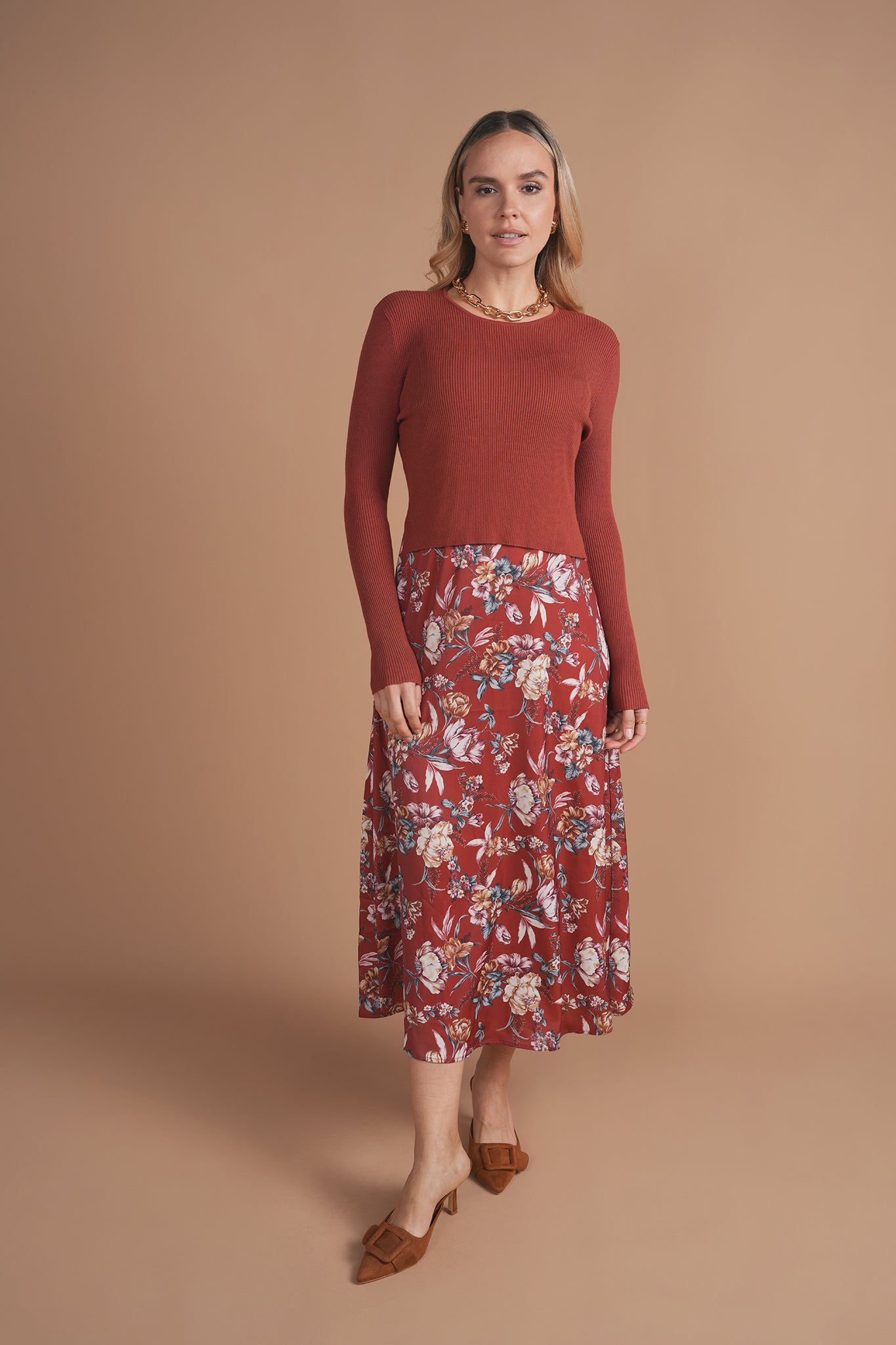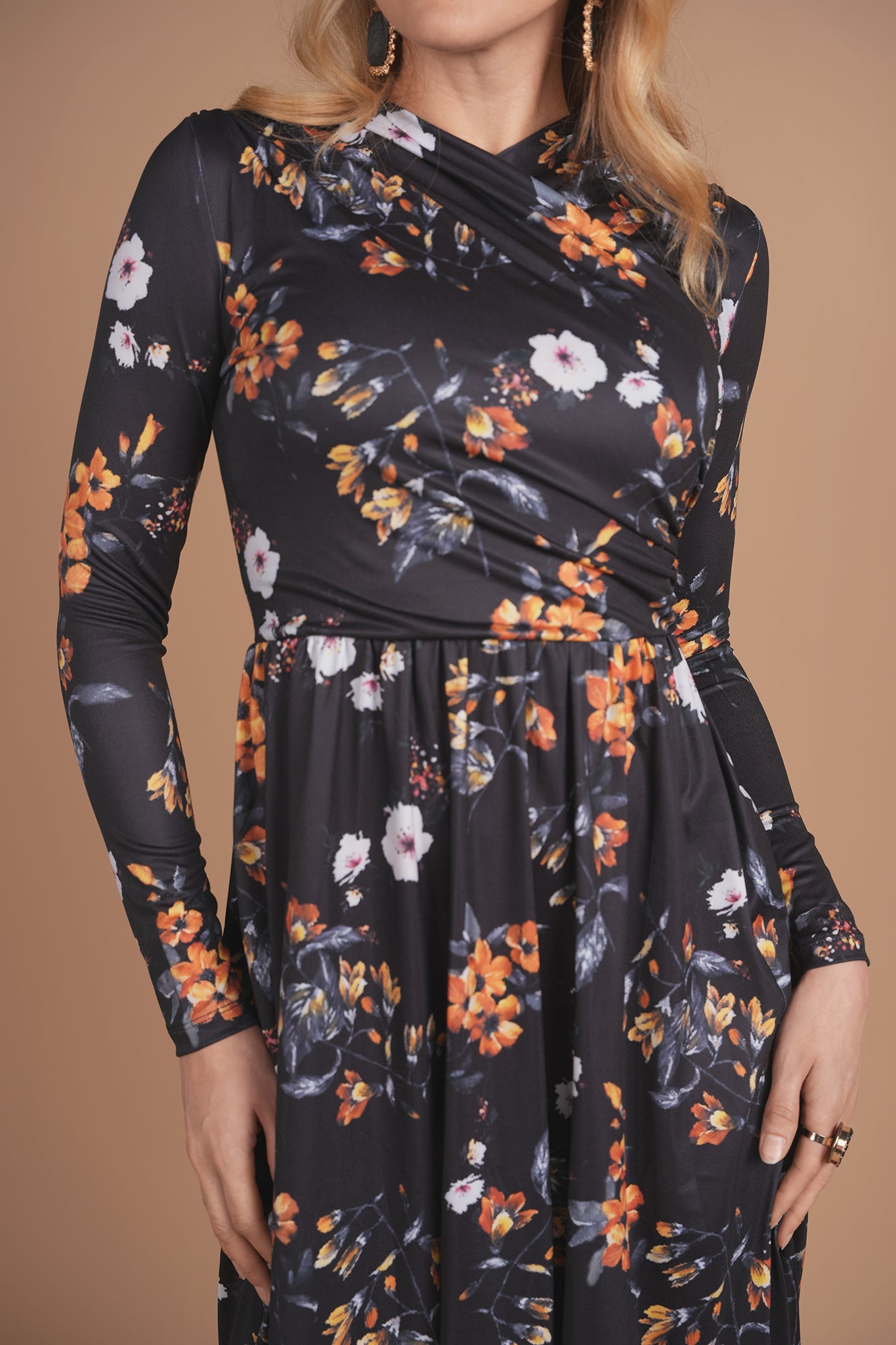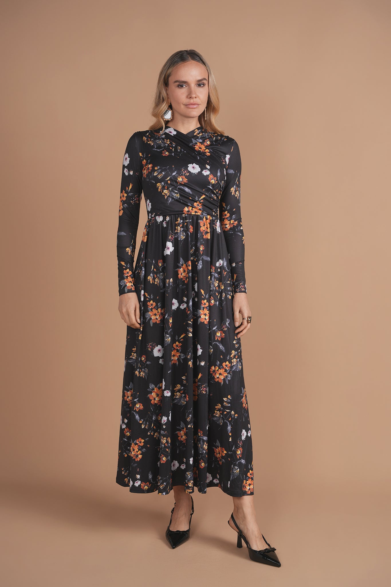 Floral Print Drop Waist Ruffle Maxi Skirt - Pine Green