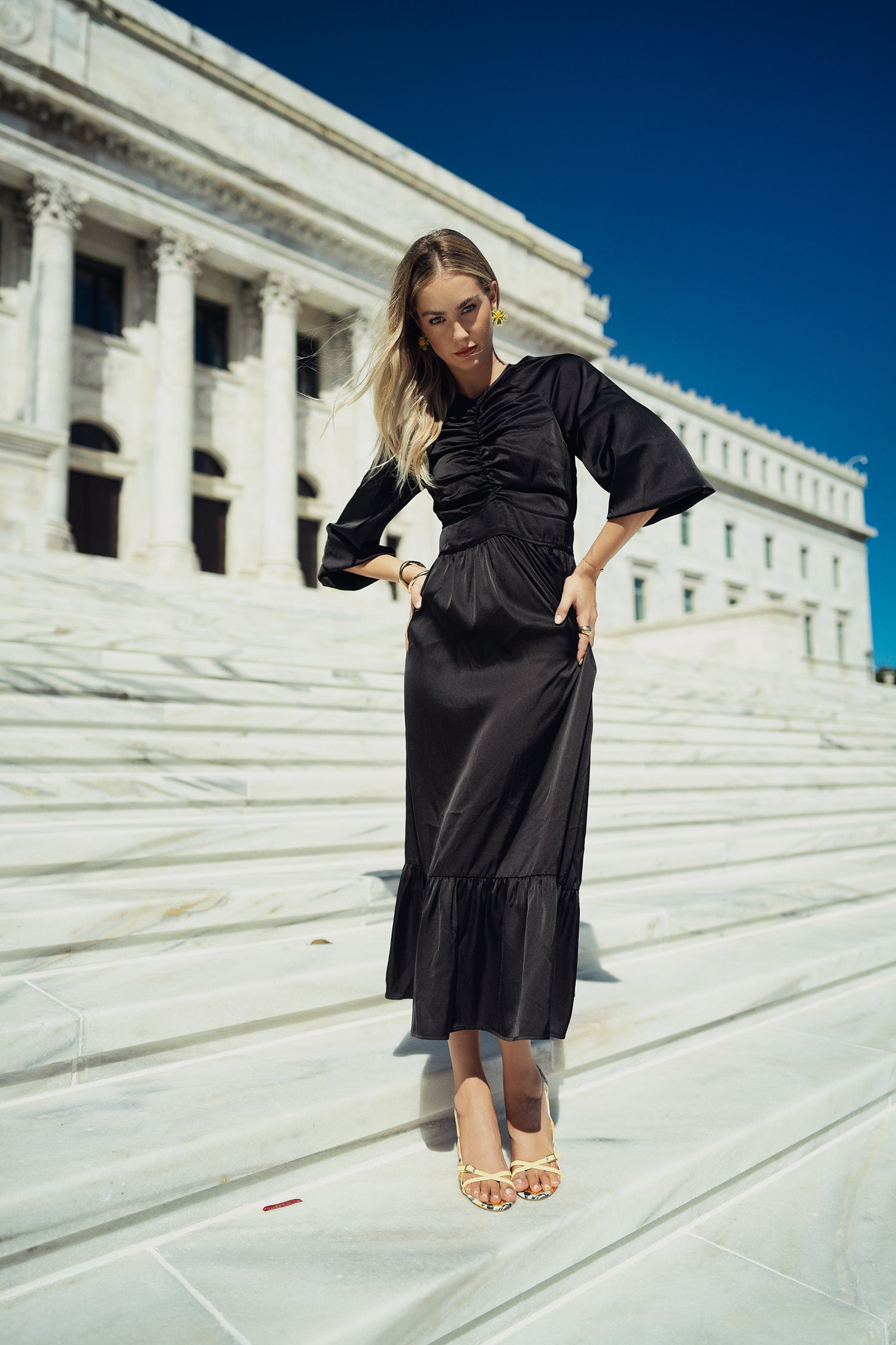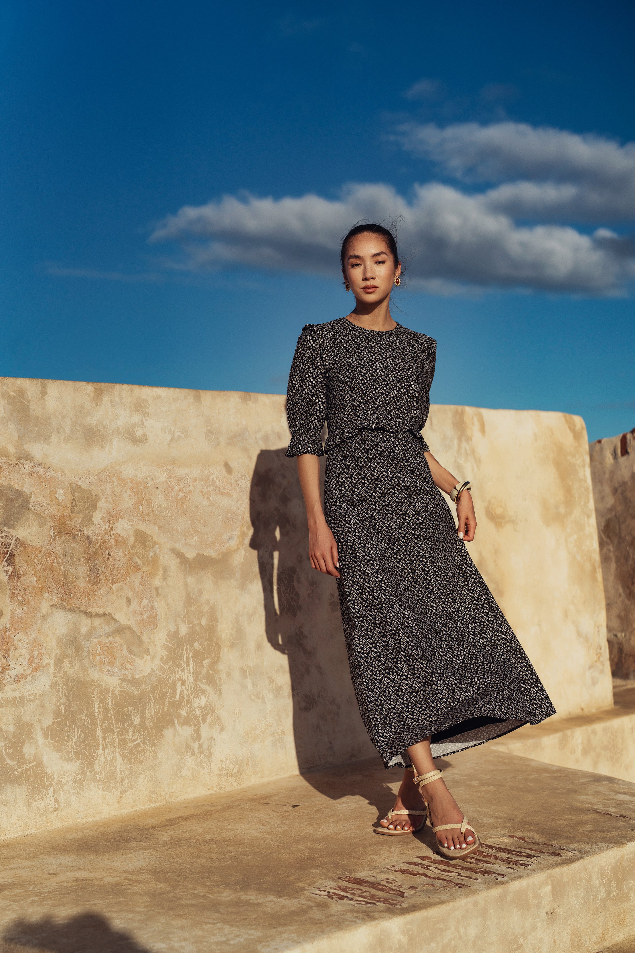 Bliss Flutter Sleeve Empire Waist Dress Black Floral