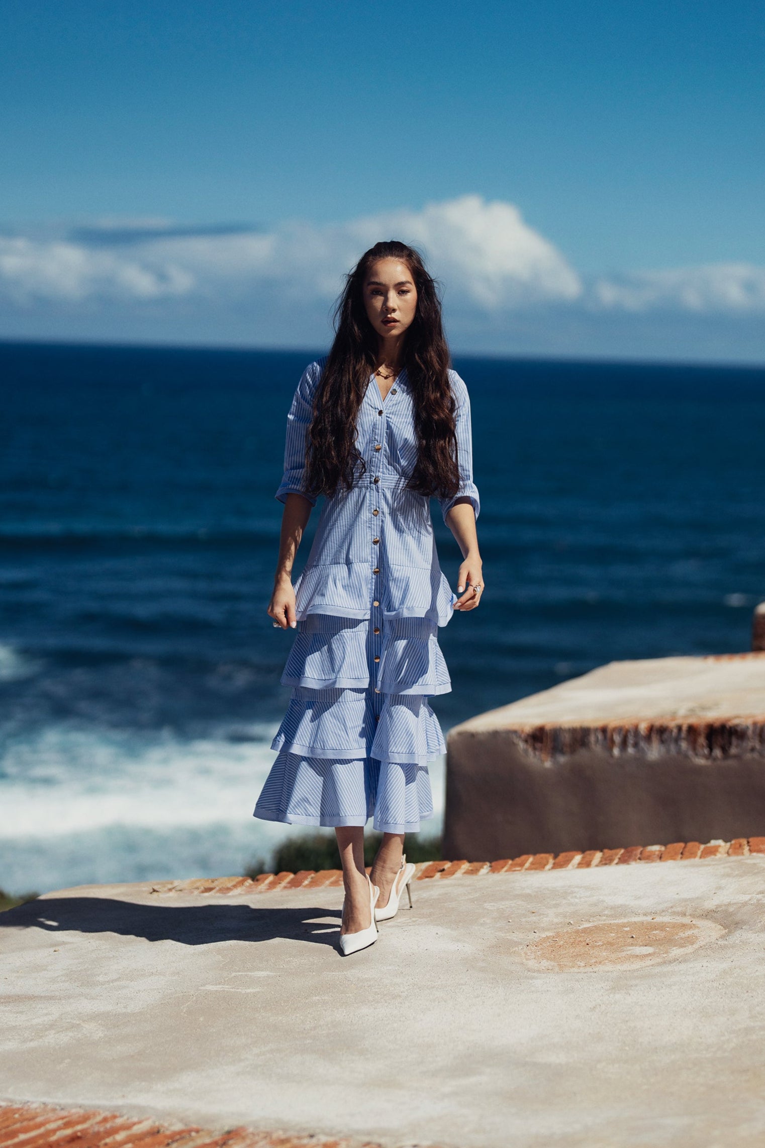 Bliss Flutter Sleeve Empire Waist Dress Teal Floral
