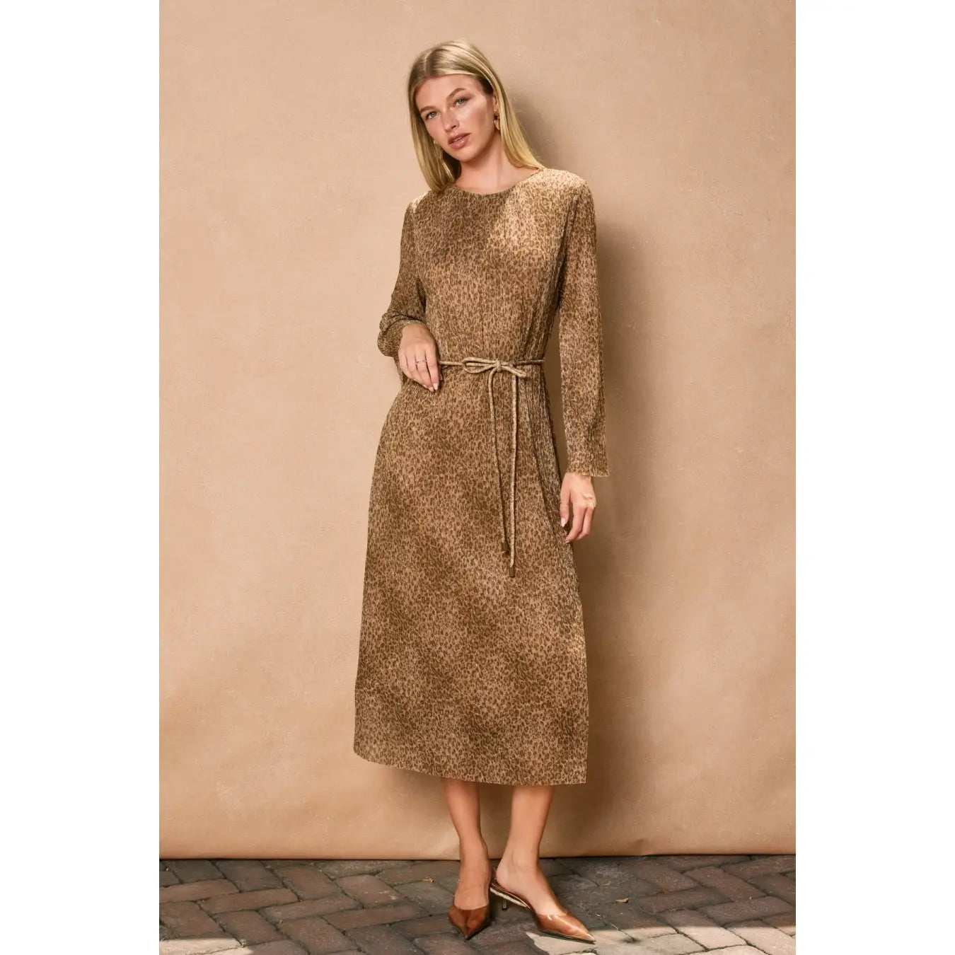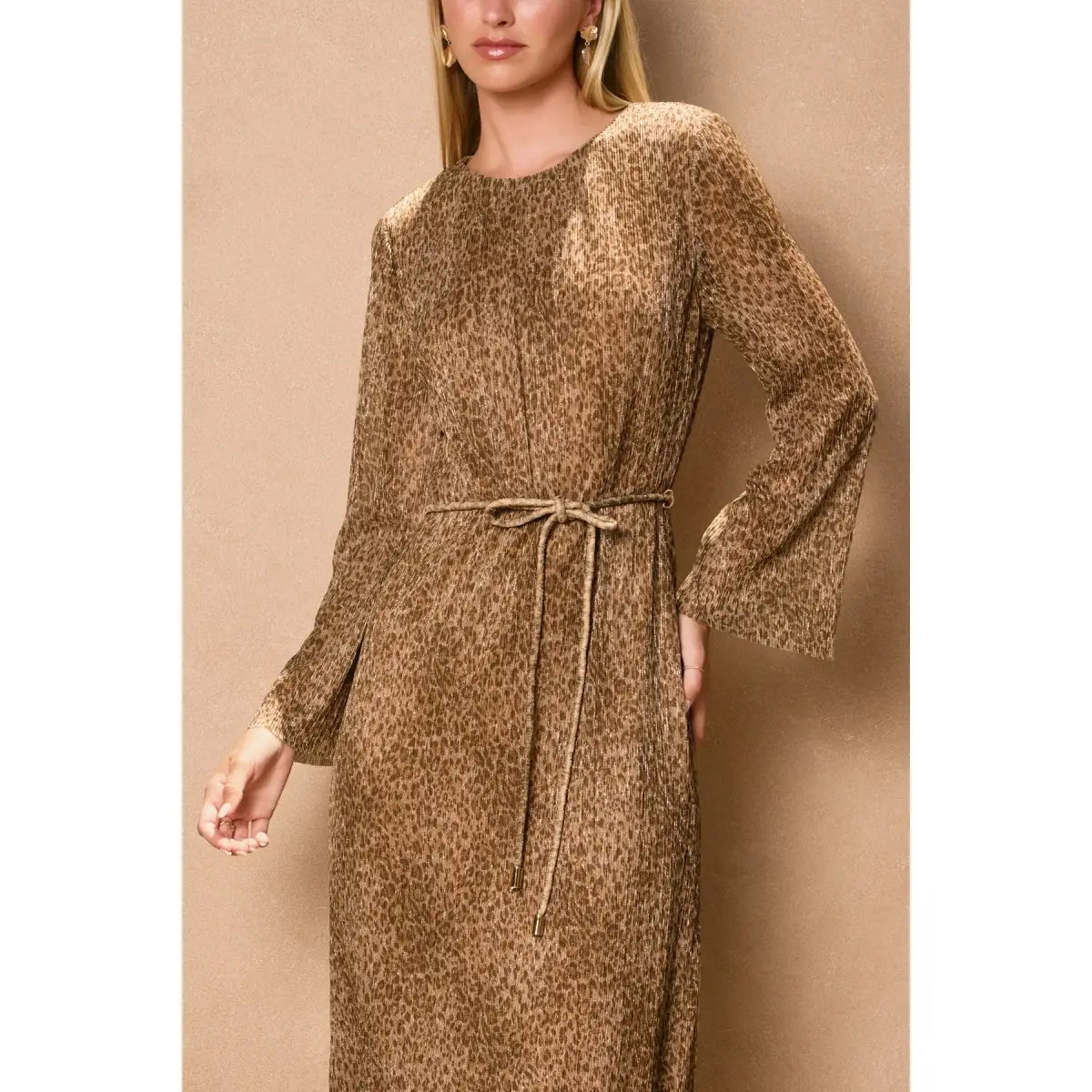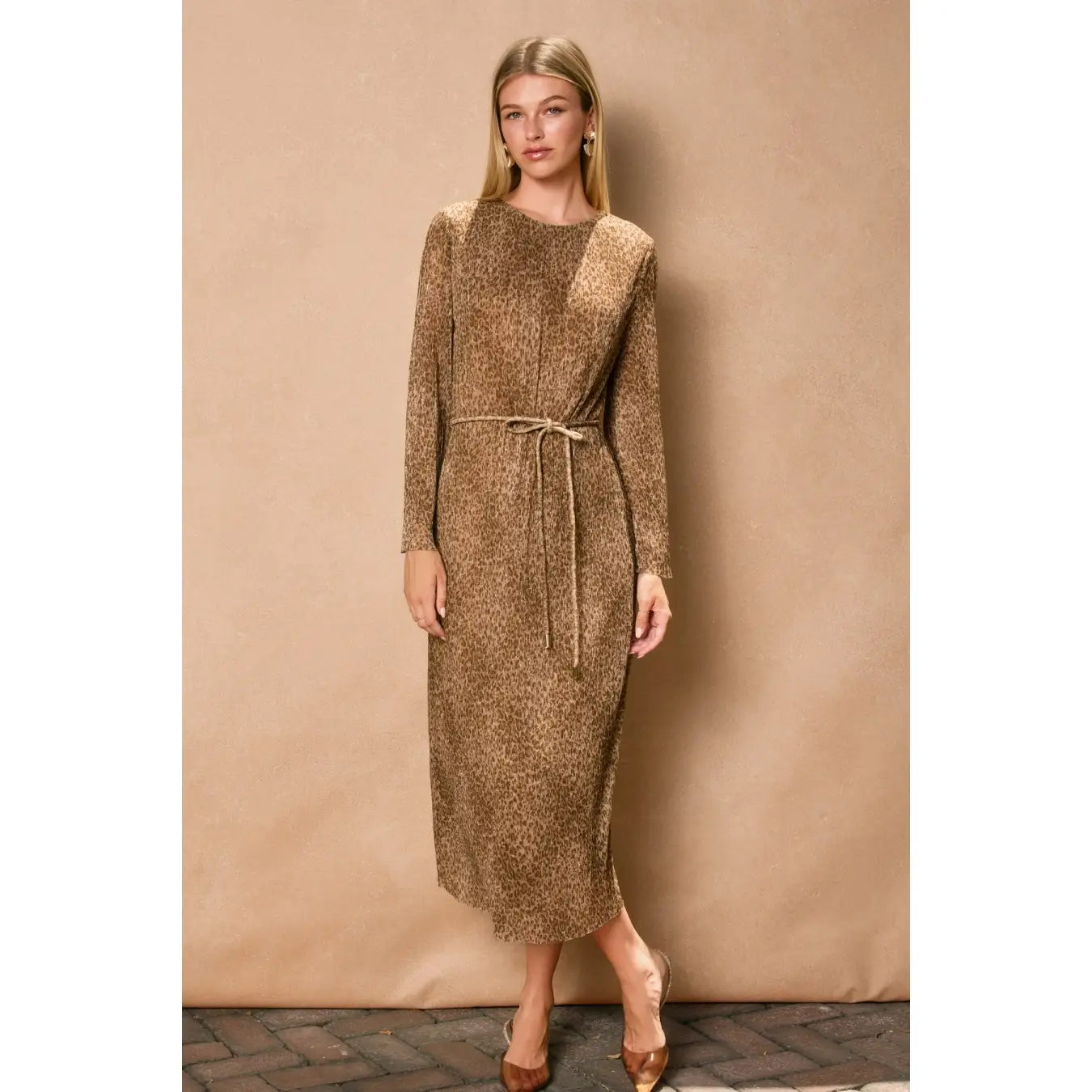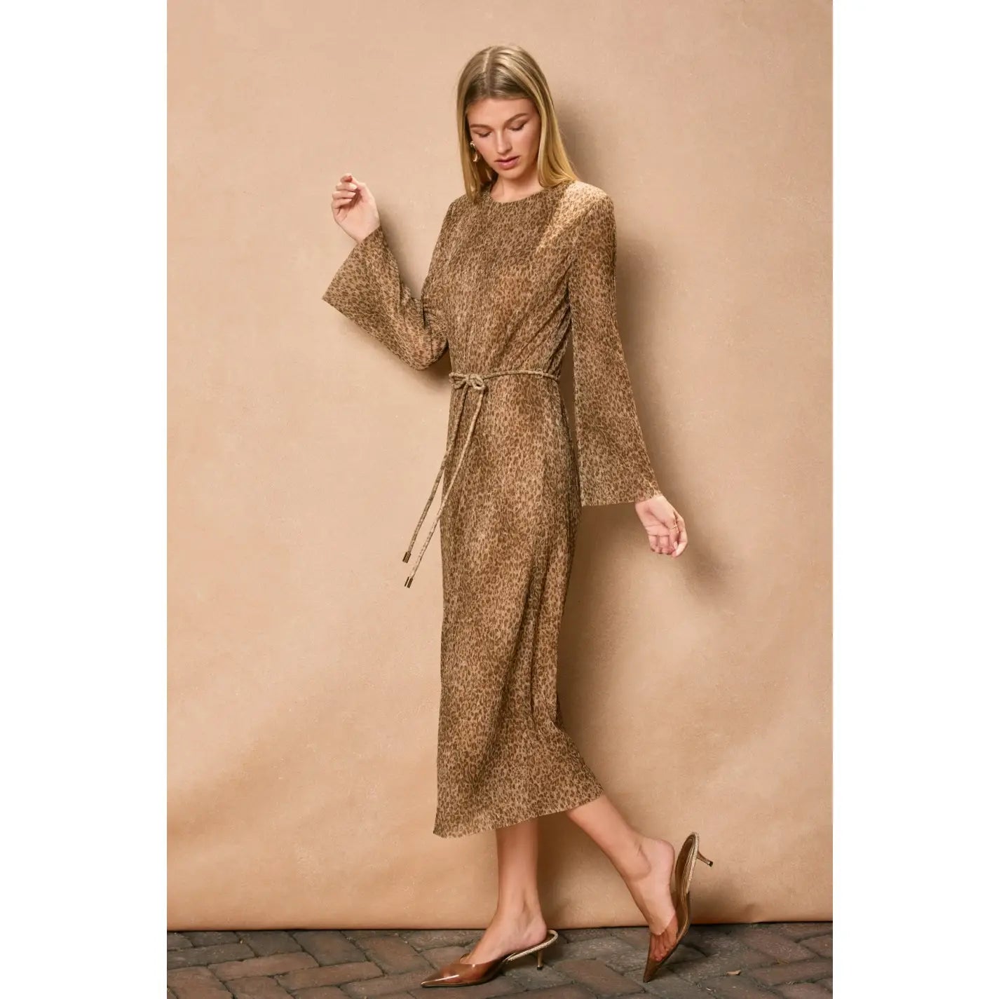Striped Rib Knit Bell Sleeve Sweater Dress - Stone