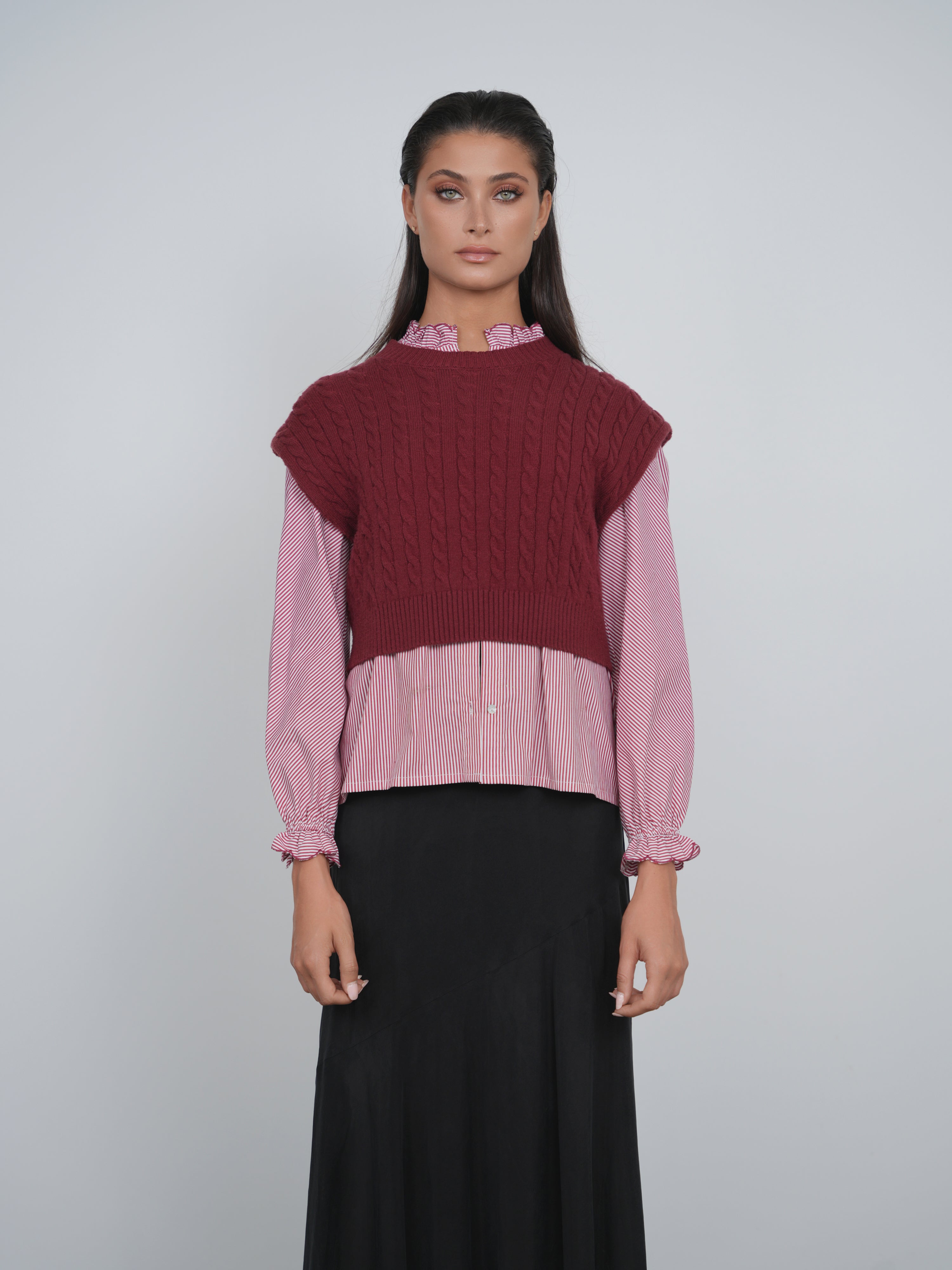 Point Cable Knit Vest - Syrah