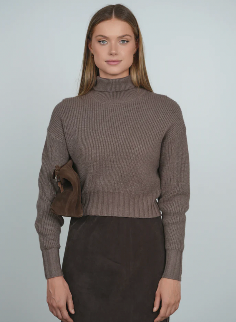 Point Chunky Dolman Sweater - Heather Chocolate
