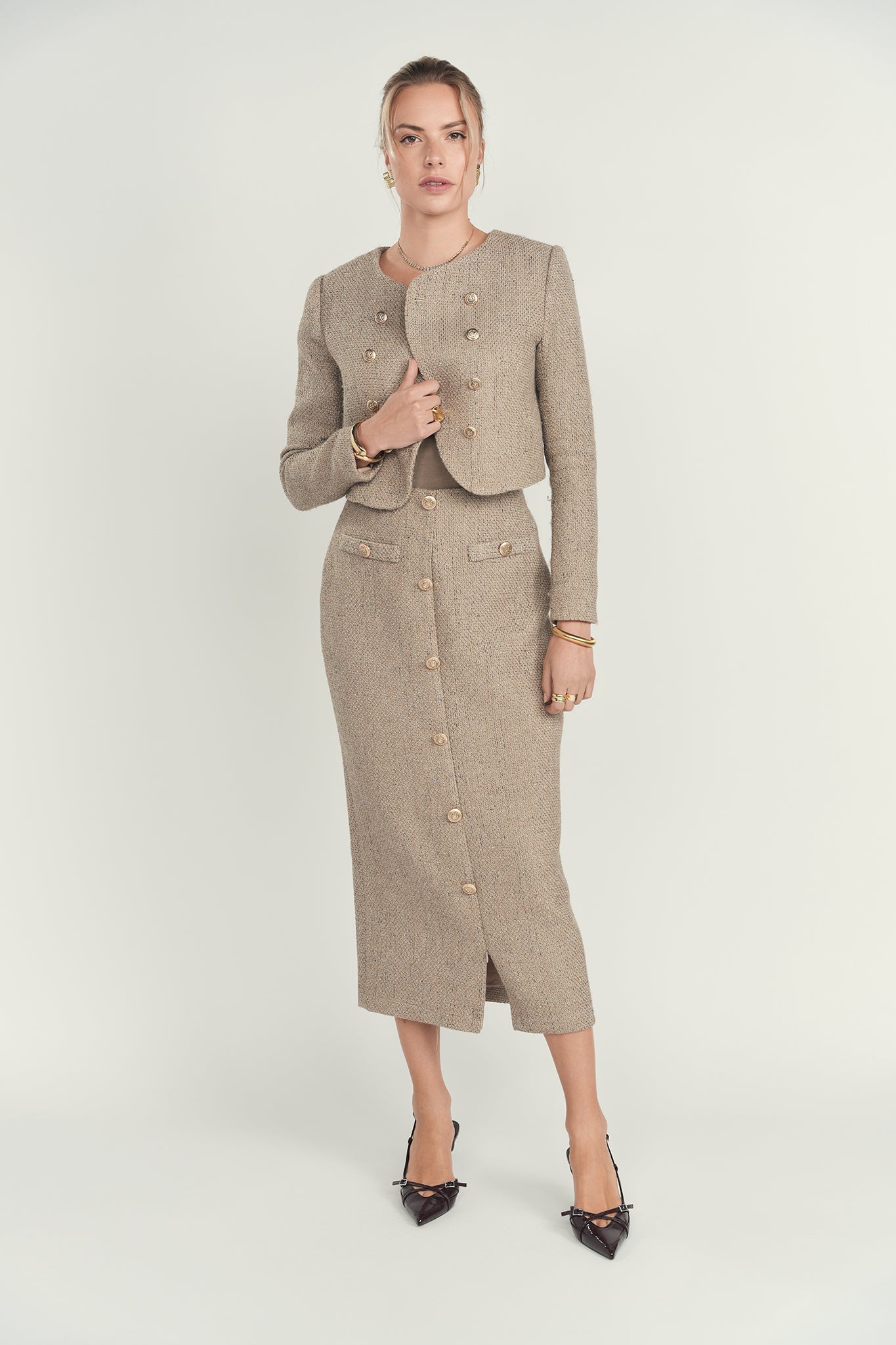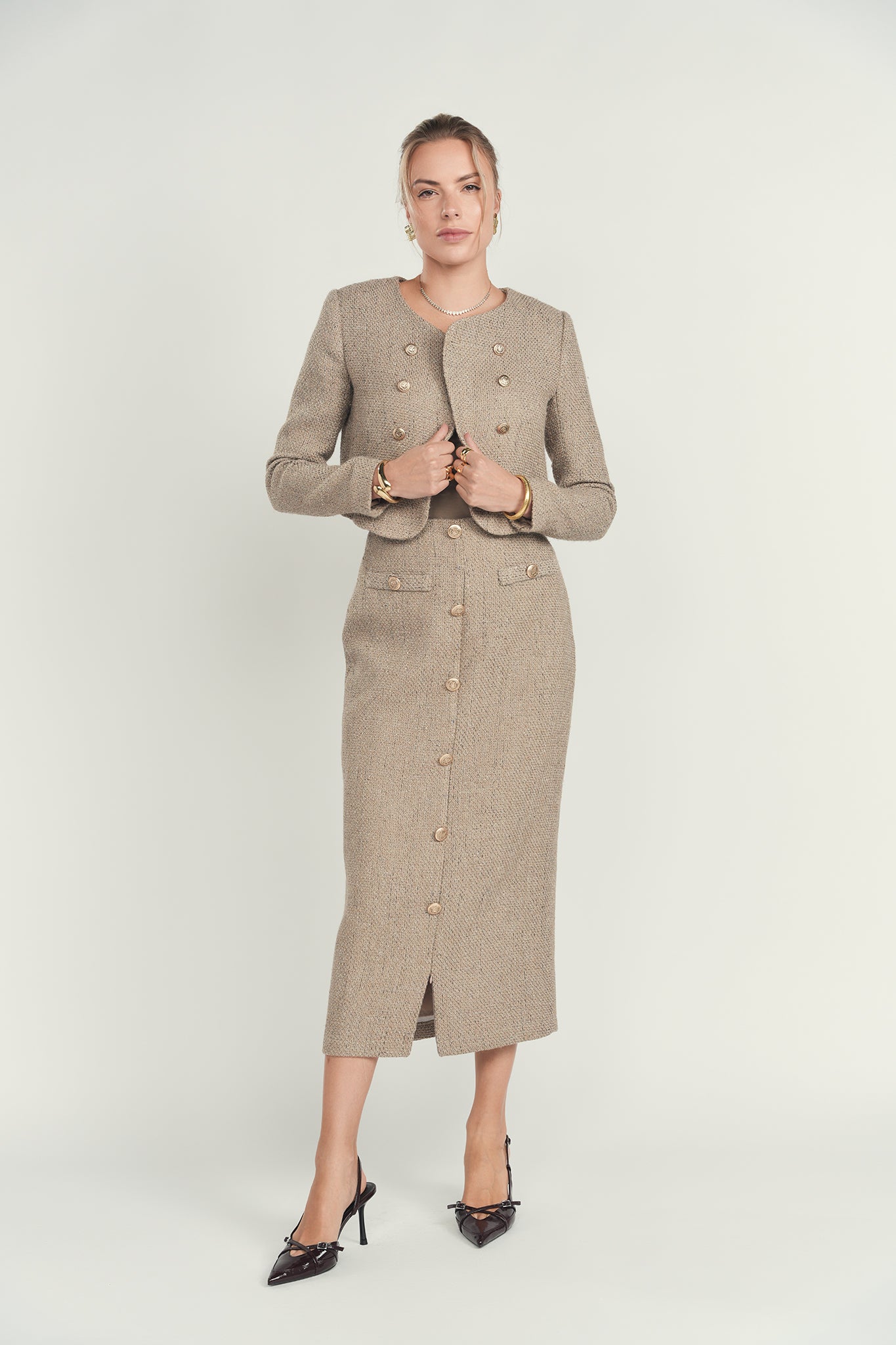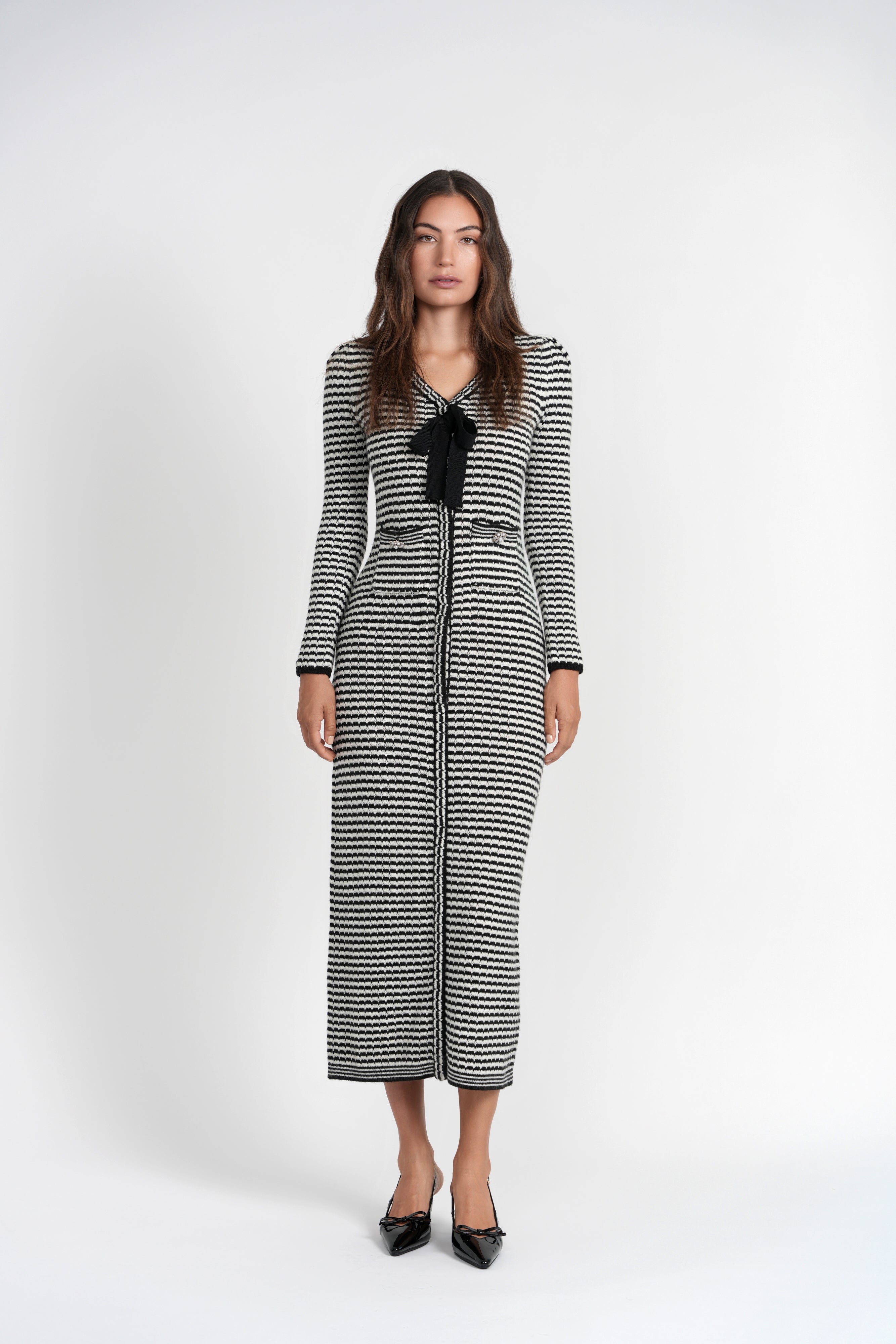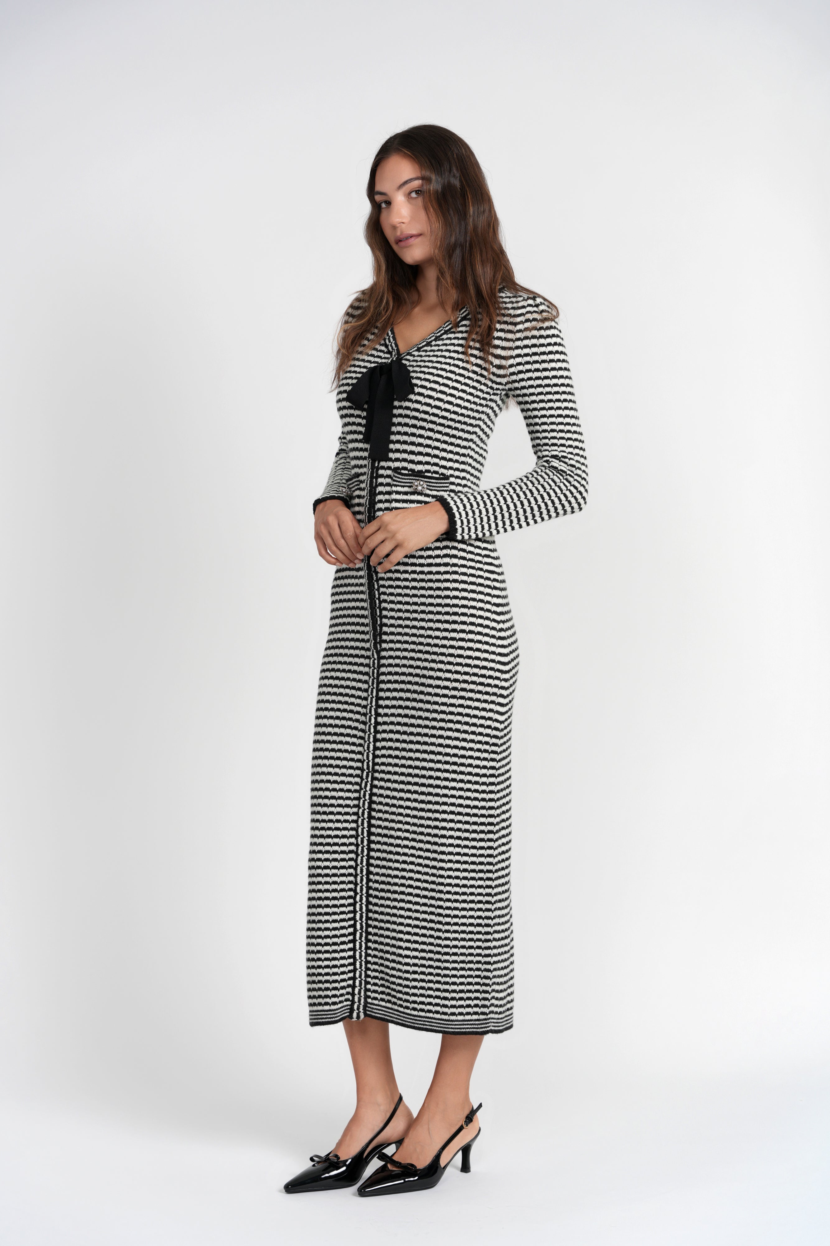 Ellie Makir Shimmer Knit Dress & Cardigan Gold Hue