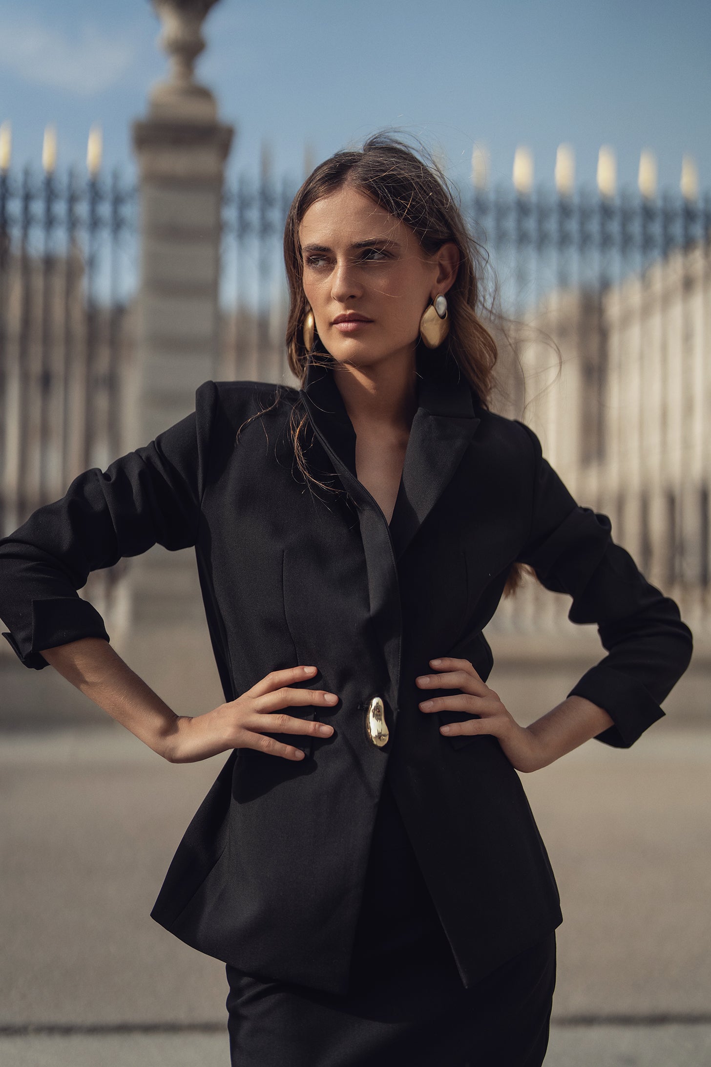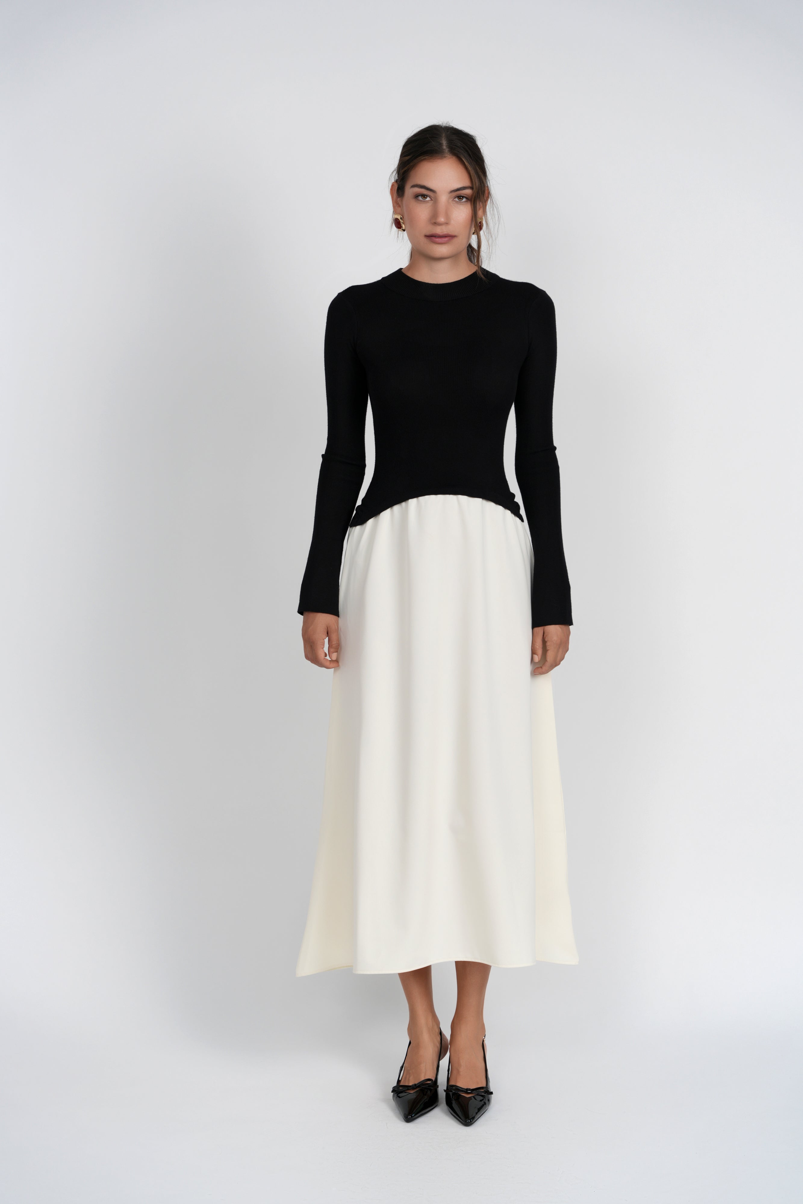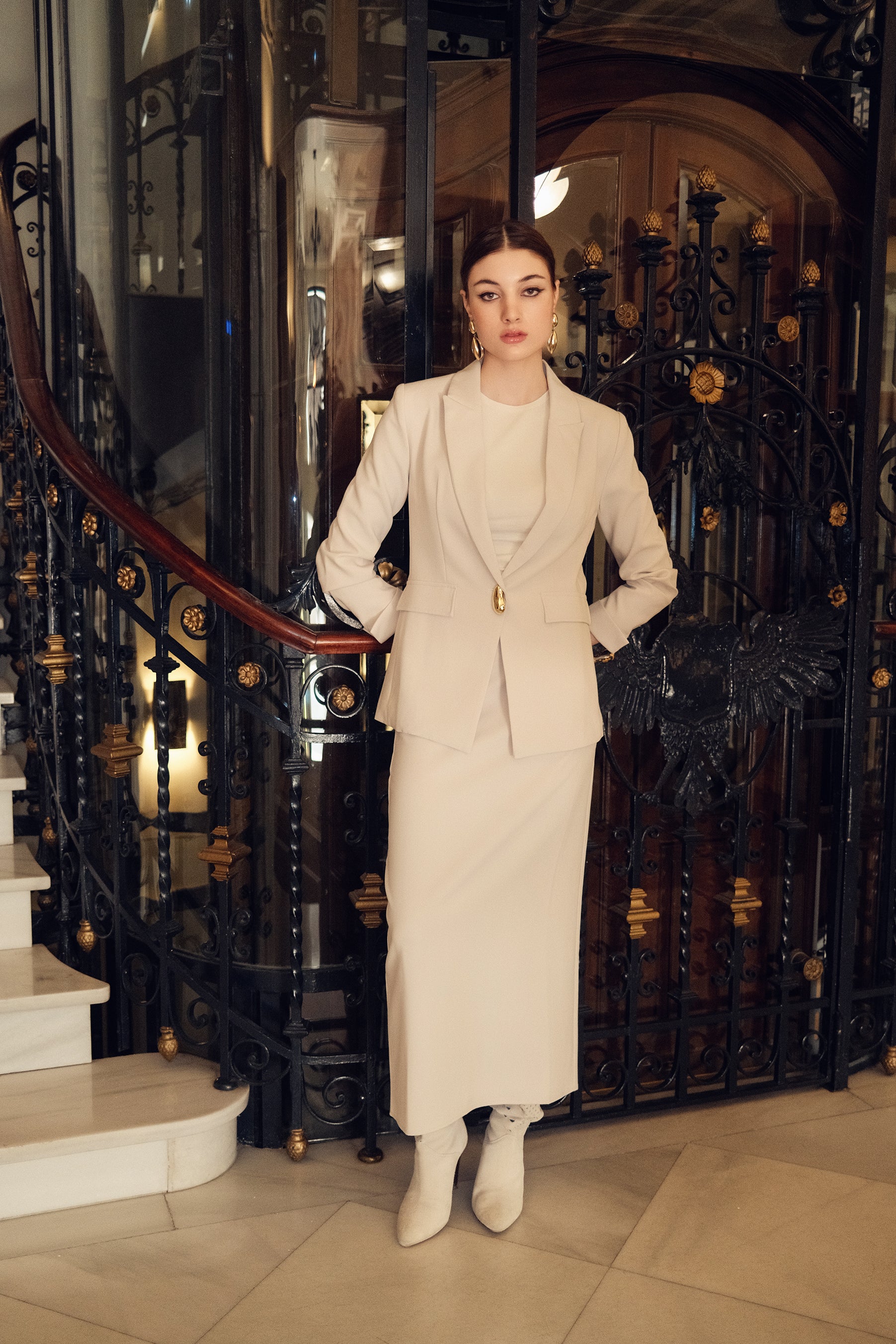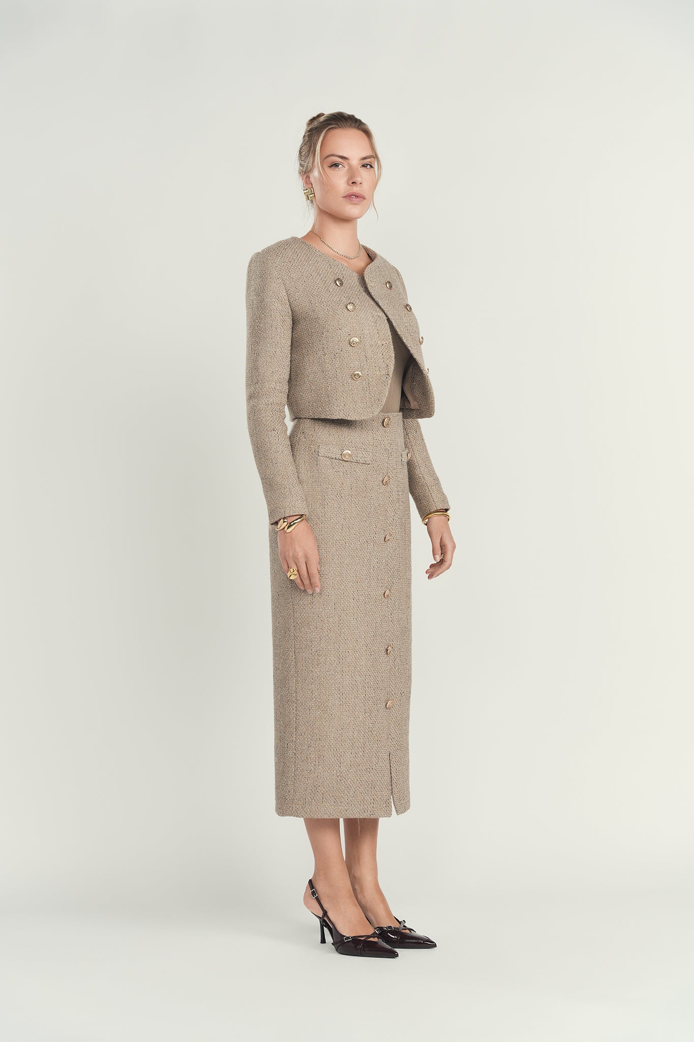Ellie Makir Shimmer Knit Dress & Cardigan Gold Hue