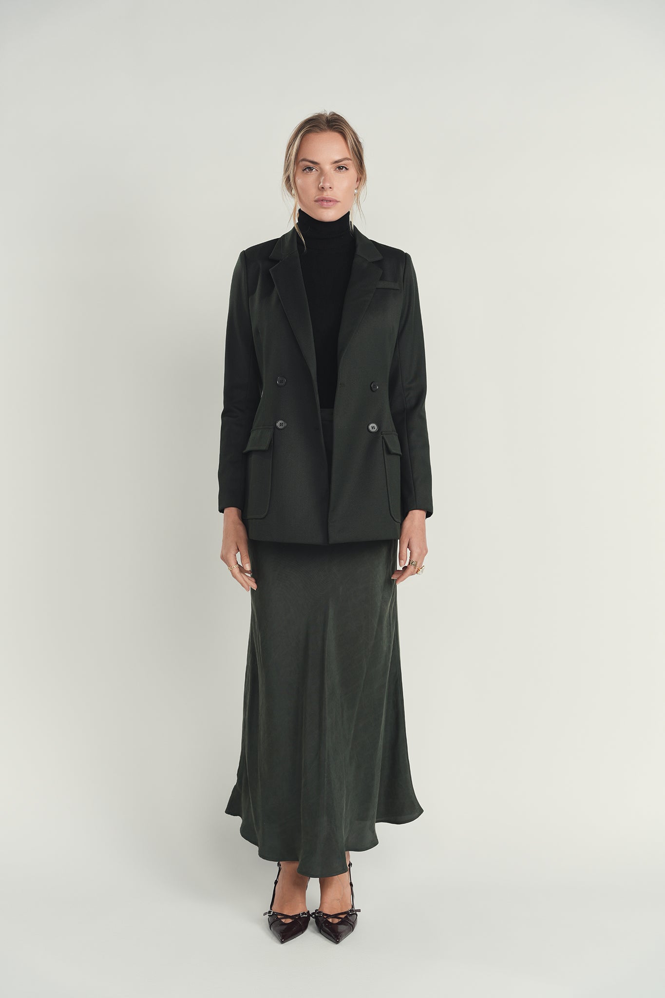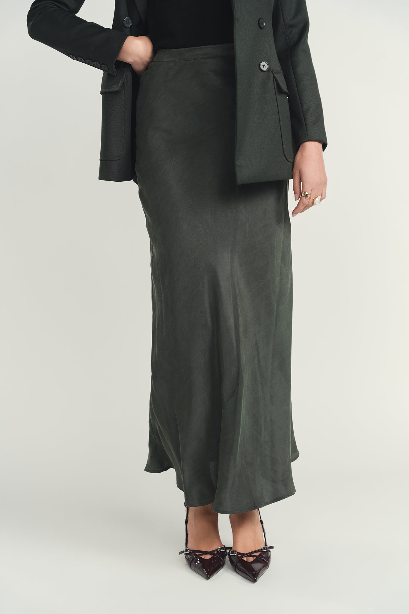 Ellie Makir Cupro Soie Skirt Hunter Green