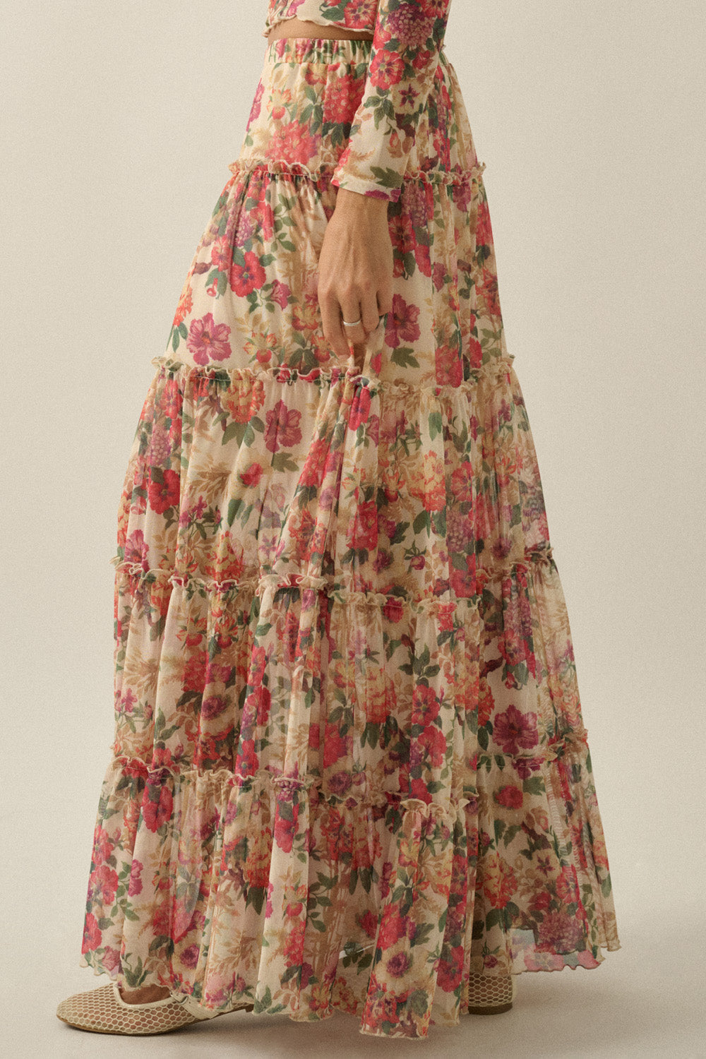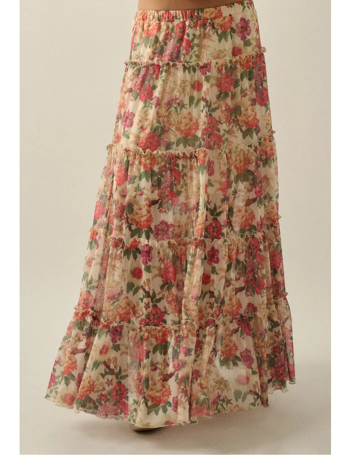 Floral Mesh Tiered Maxi Skirt