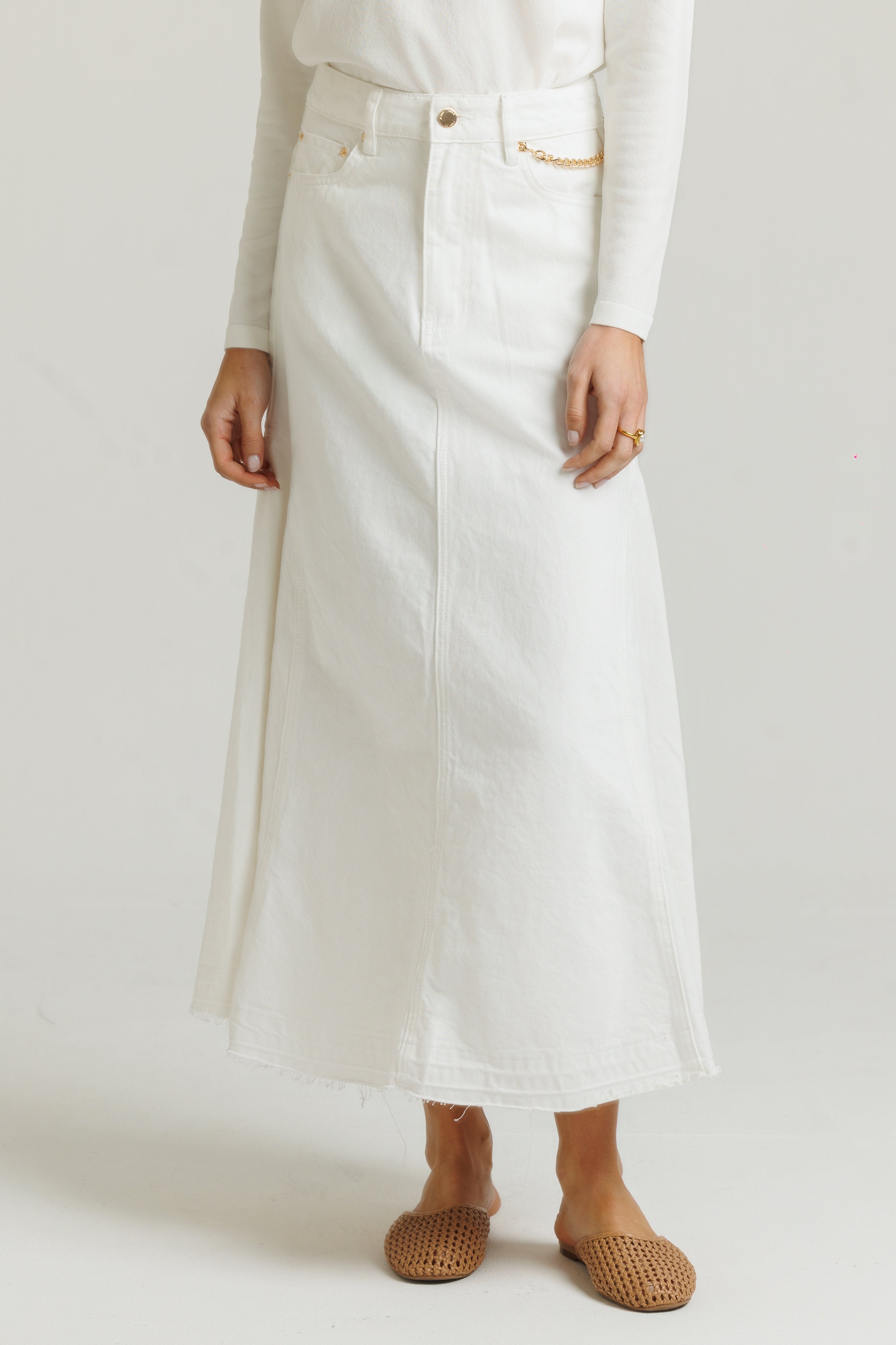 Loup Chain Denim Skirt - White