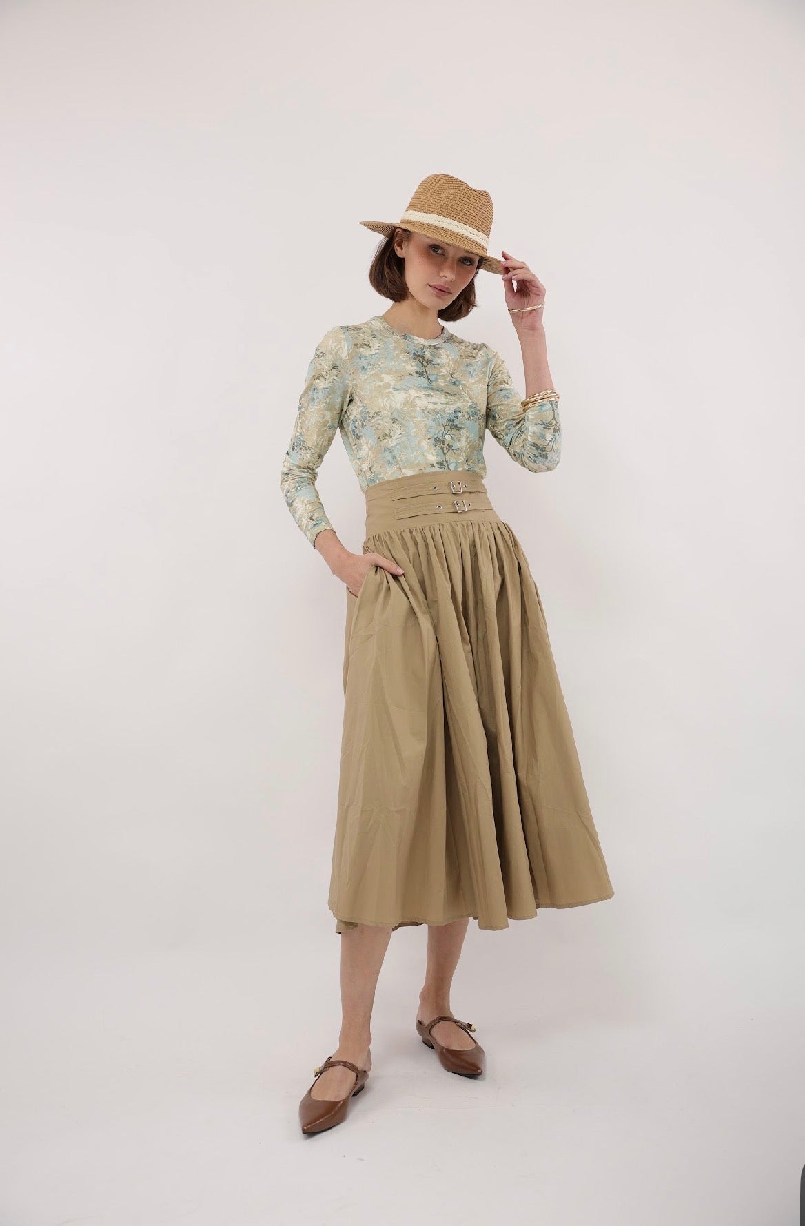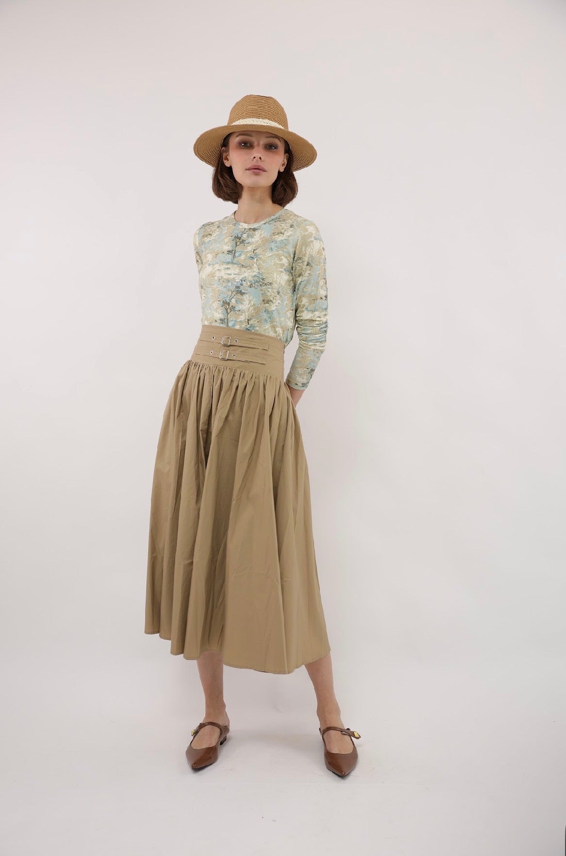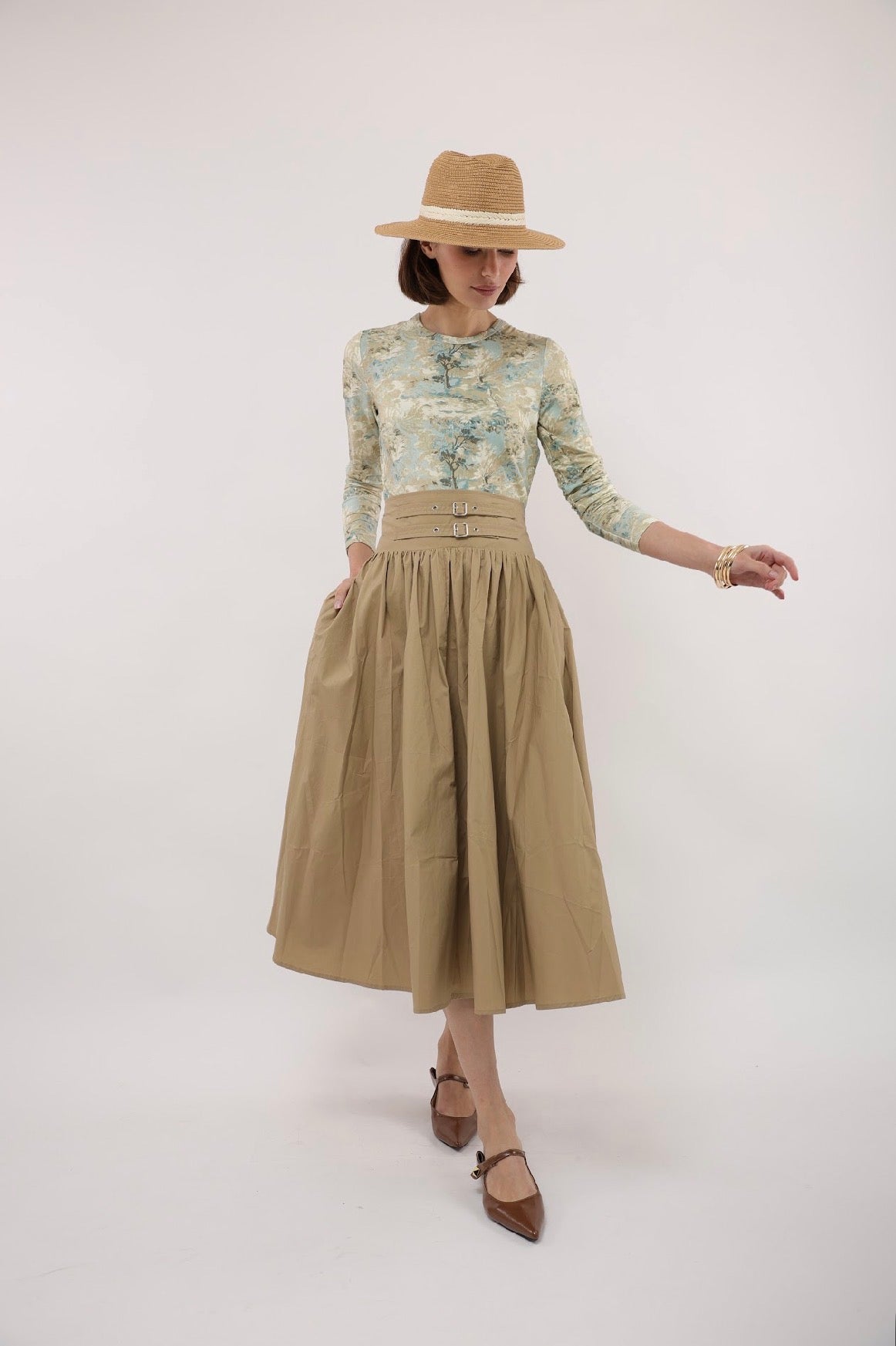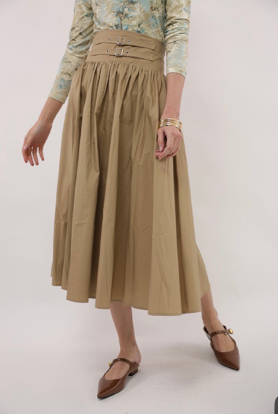 Point Printed Poplin Maxi Skirt - Iced Coffee Portofino Print
