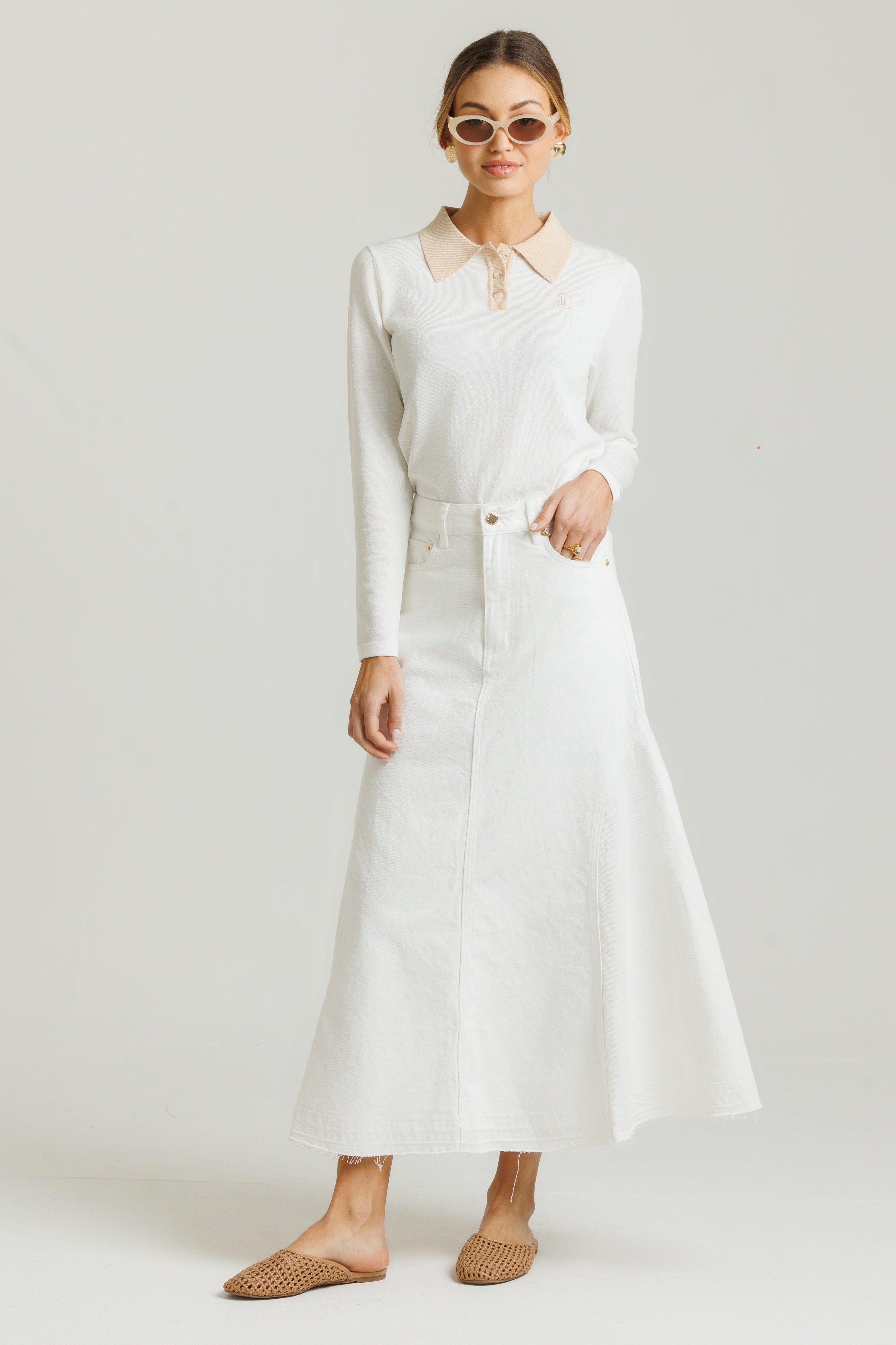 Point X HD Maxi Skirt W/ Piping - Cream