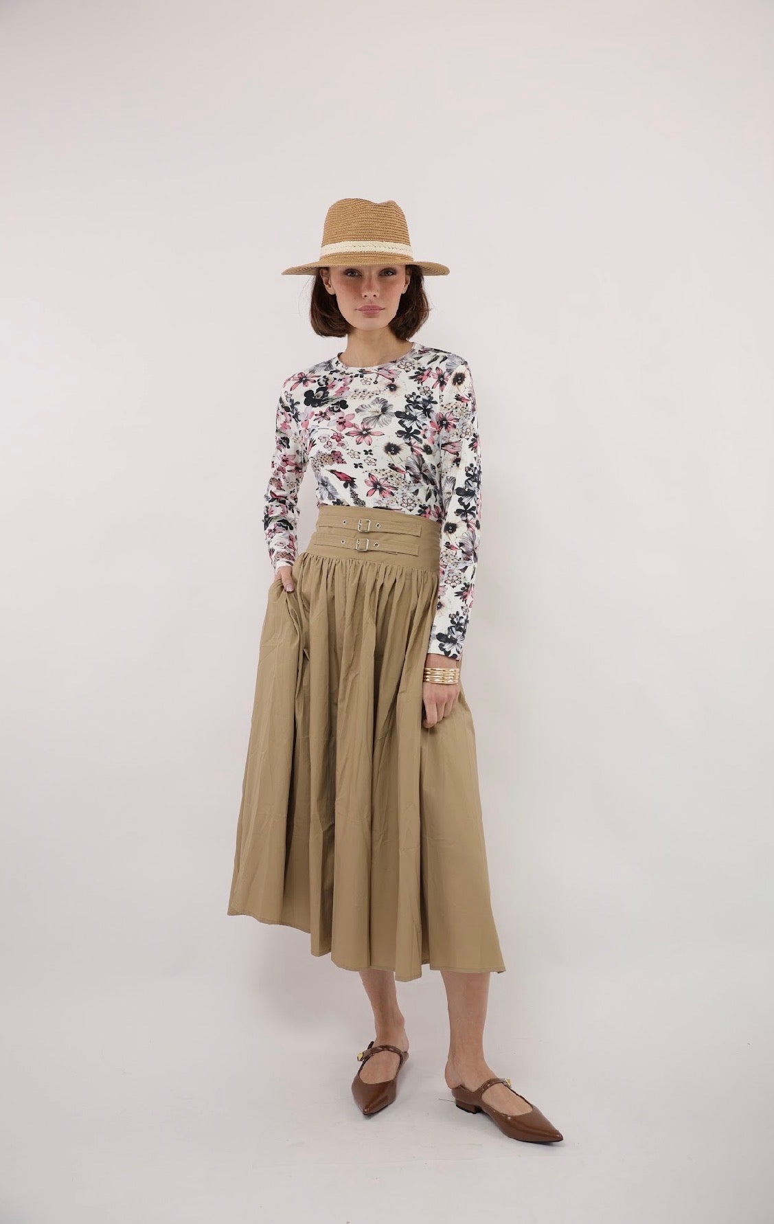 Floral Printed Aline Midi Skirt