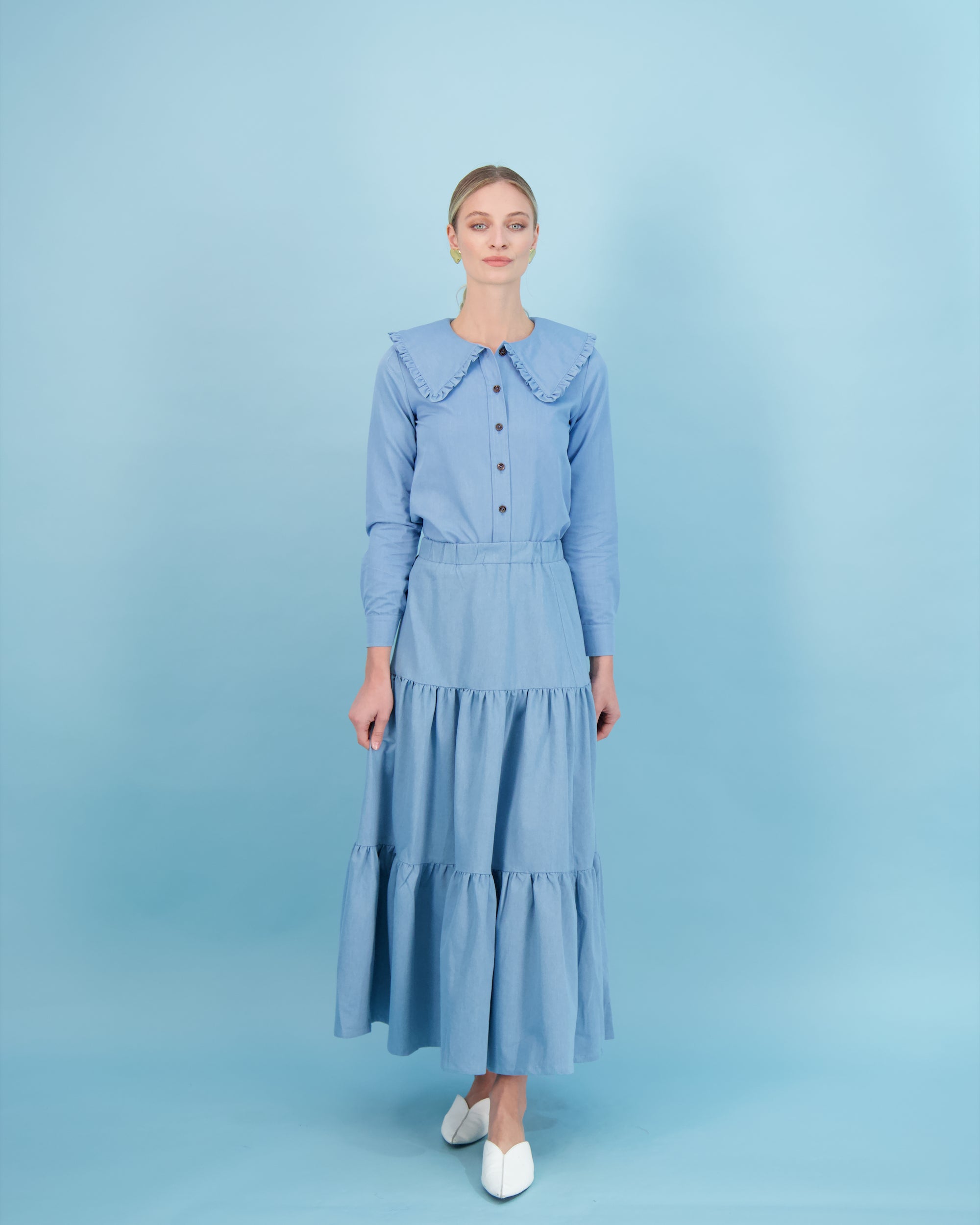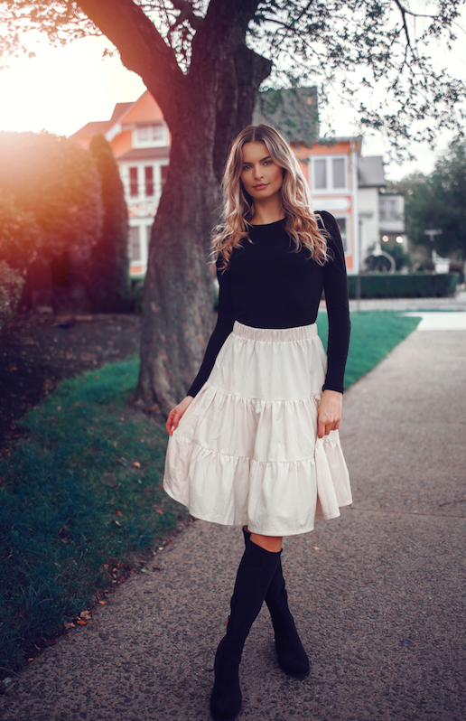Bliss Tiered Corduroy Skirt Ivory - Ivory