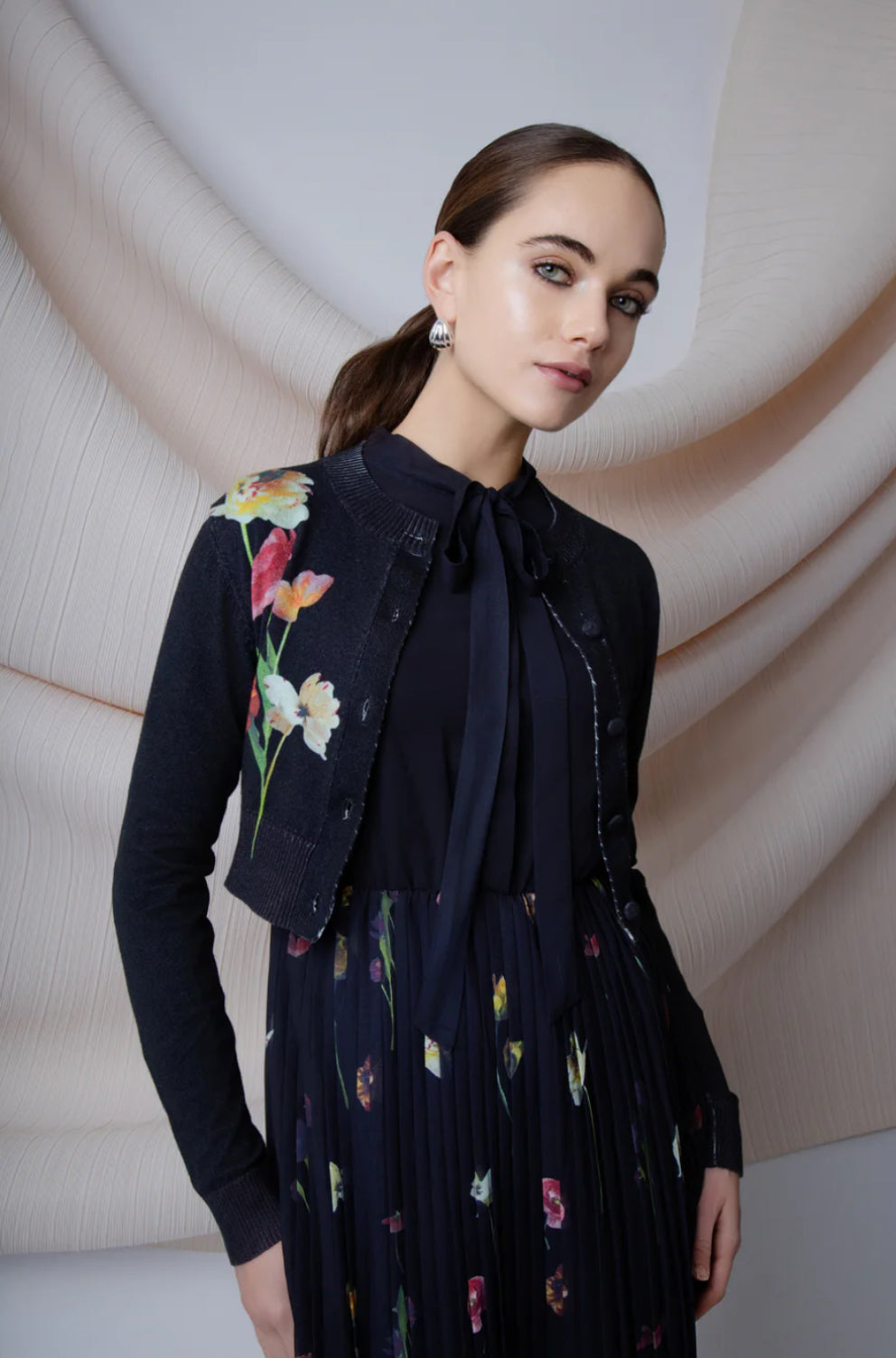 Floral Print Tie Cropped Cardigan