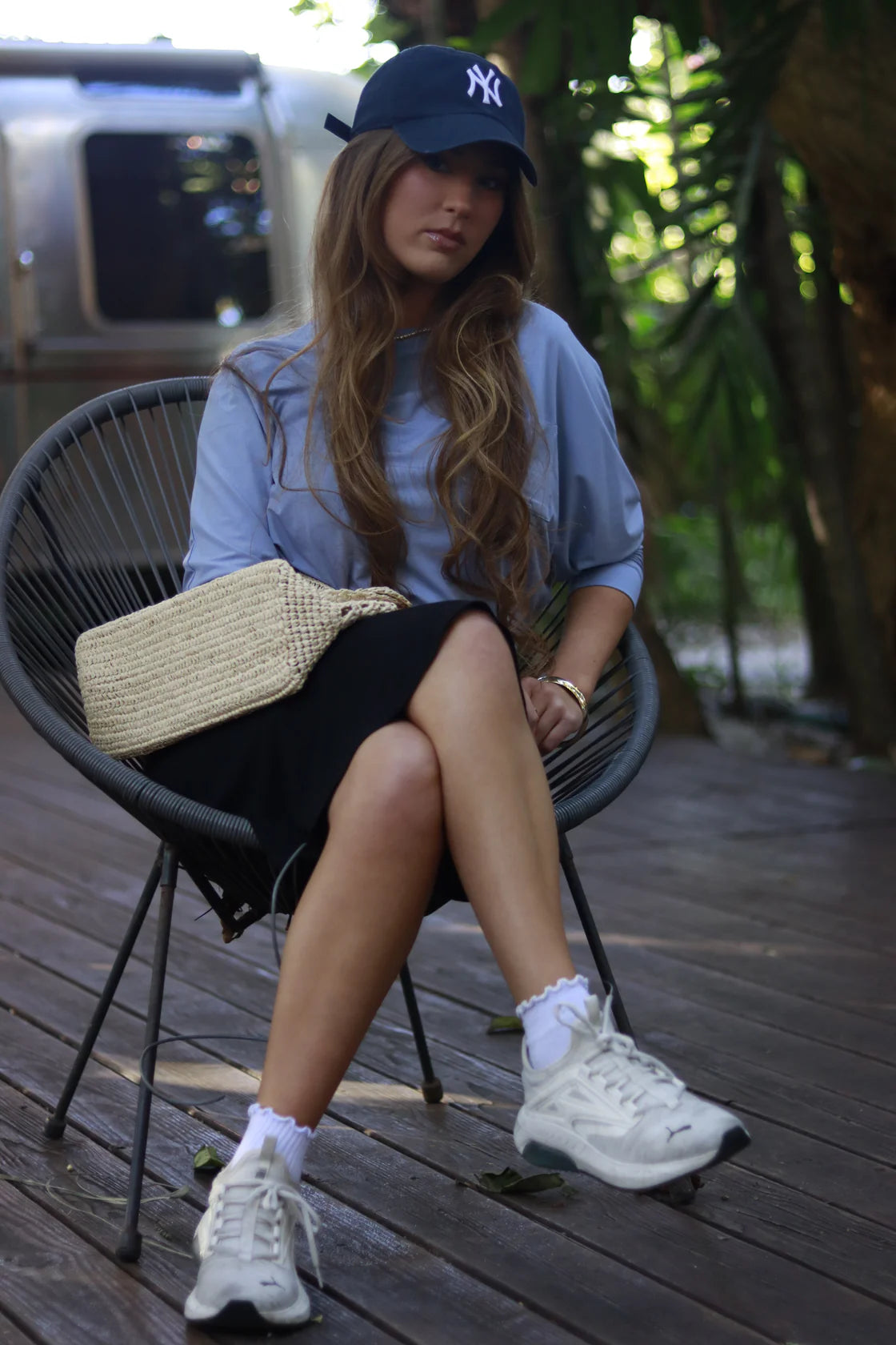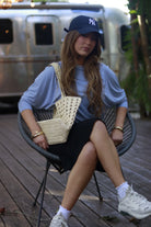 The pocket tee features a flattering dolman shape that can be worn cropped or at regular length. With its 3/4 sleeves and lightweight material, it's ideal for warmer weather. Available in six versatile colors, this tee is a wardrobe essential.