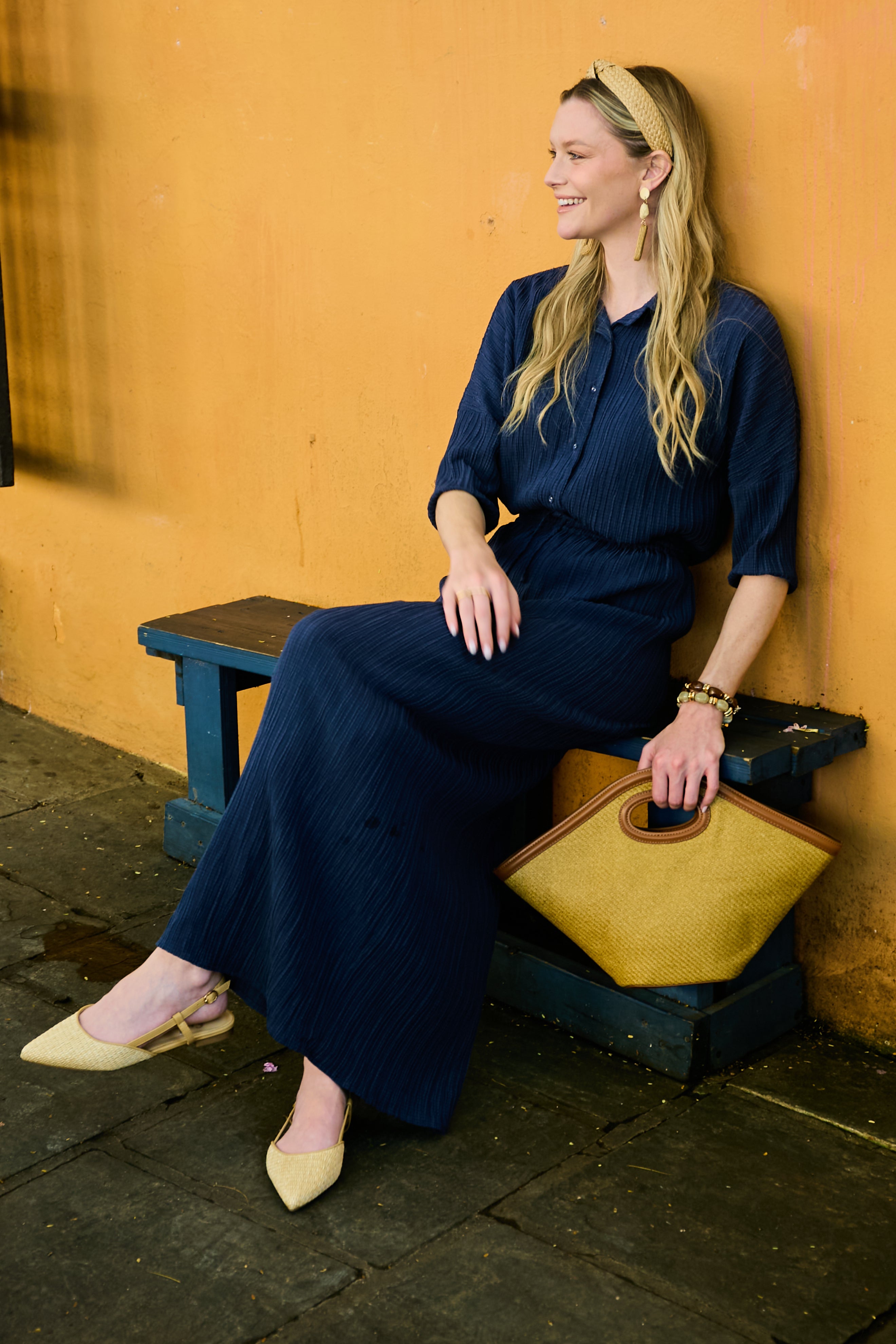 The Crinkle Set is an effortlessly chic two-piece designed for warm days and easy living. Made from a textured, airy fabric with a light, summery feel, it drapes beautifully while keeping things breathable and comfortable. The oversized dolman blouse has a relaxed, flowy shape with three-quarter sleeves finished with soft elastic cuffs, while the straight skirt features an adjustable drawstring waist for an easy, flattering fit that works beautifully for a range of body types. Worn together or styled separately, this set feels relaxed yet refined and endlessly wearable. Perfect for everyday wear, it looks especially lovely paired with light shoes for a soft, polished finish.