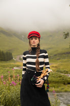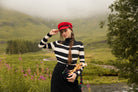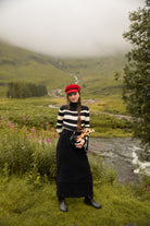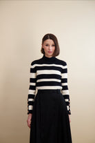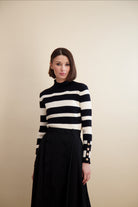 Pashmina Multi Stripe Rib Knit Mock Neck Black Stripe
